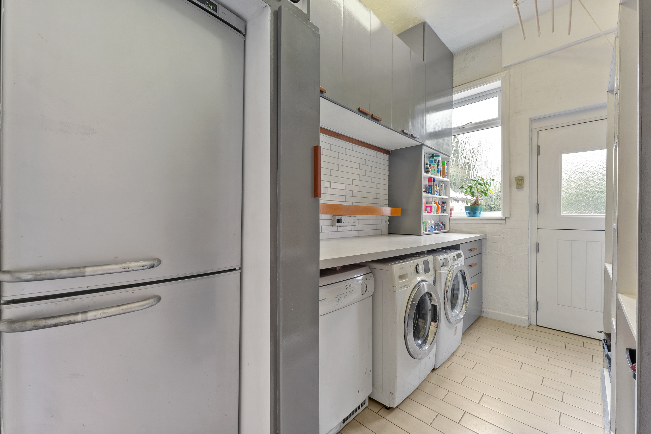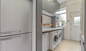 Completing the ground floor, a practical utility room supports busy family life with excellent storage and workspace. Designed to accommodate two washing machines, a dryer and an additional larder fridge, it keeps everyday tasks neatly out of sight, while also providing direct access to the outside for added convenience.