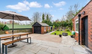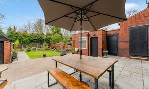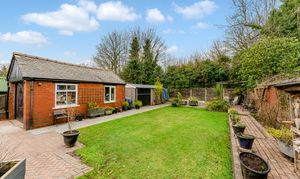 A broad paved terrace adjoining the house provides an ideal setting for outdoor dining and entertaining, while the lawned central section offers ample space for children to play or for further landscaping. Additional seating at the far end of the garden creates a more secluded, sociable spot, perfect for summer evenings and informal gatherings. The overall size and layout of the plot also offer clear scope for extension, subject to the necessary consents, allowing future owners the opportunity to further enhance or reconfigure the accommodation if desired.