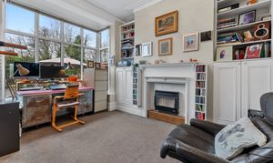 Set to the rear of the house, the study enjoys a quieter position overlooking the garden, offering a peaceful environment for home working, reading or creative pursuits. Large windows provide leafy views and excellent natural light, ensuring the room feels connected to the outdoors while remaining comfortably separate from the main living areas.