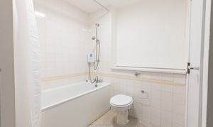 The spacious living/dining area has ample space for a 6 person dining table, L shaped sofa, television and other freestanding furniture. It also benefits from newly fitted carpets and lots of natural light pouring in from the large window. The kitchen is accessed from the living / dining room and is of a good size with a number of wall and base units, new integrated oven, roll top work surfaces and space for other appliances.
