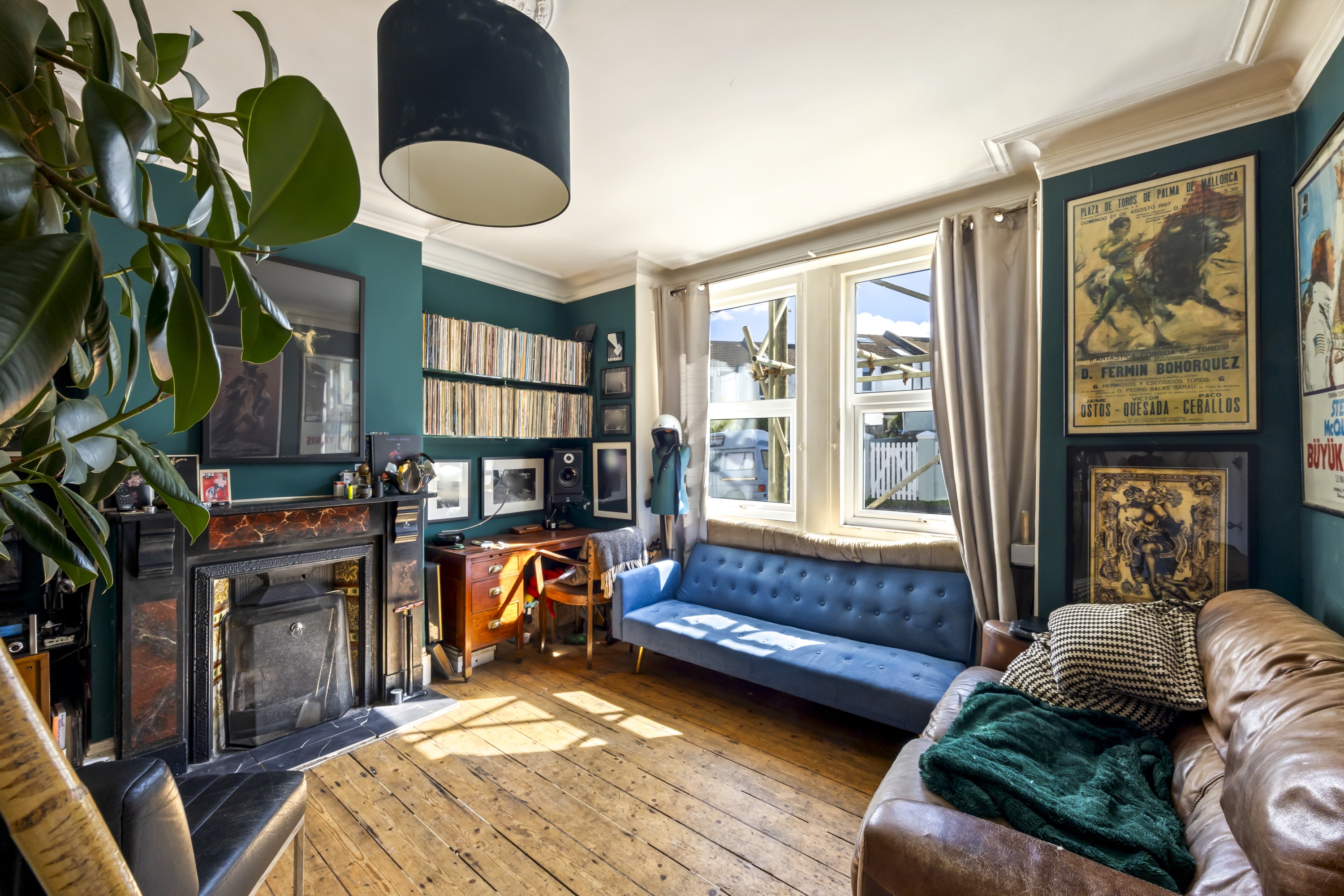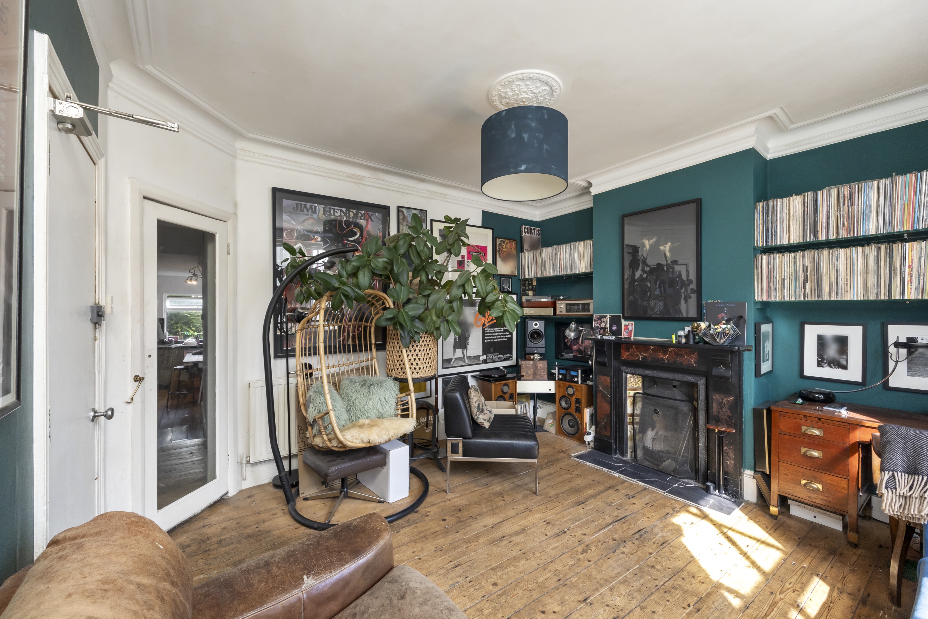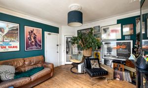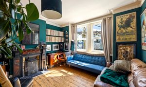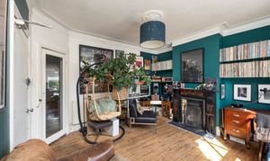 Upon entry, residents are greeted by a spacious living room boasting exposed wooden flooring, dual windows allowing ample natural light to filter through, and an inviting open fireplace, creating a cosy atmosphere perfect for relaxation or entertaining.