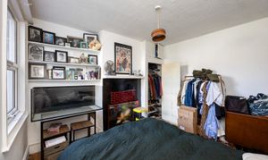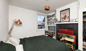 Adjacent, the generous double bedroom features integrated storage, a feature fireplace and window overlooking the rear aspect.
