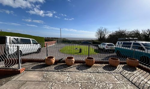 Accessed via electronic gates from the front to ensure privacy and there is a drive in/ drive out circular drive laid primarily to stone chippings. There is a central infill area laid to lawn. Adjacent to the property is a raised veranda style patio with ramp and stepped access and this forms an attractive viewpoint to enjoy the Channel views. To the right side of the property (from the front) there is a secure gated area ideal for general storage and this leads to the rear garden, there is also similar to the left-hand side of the property.