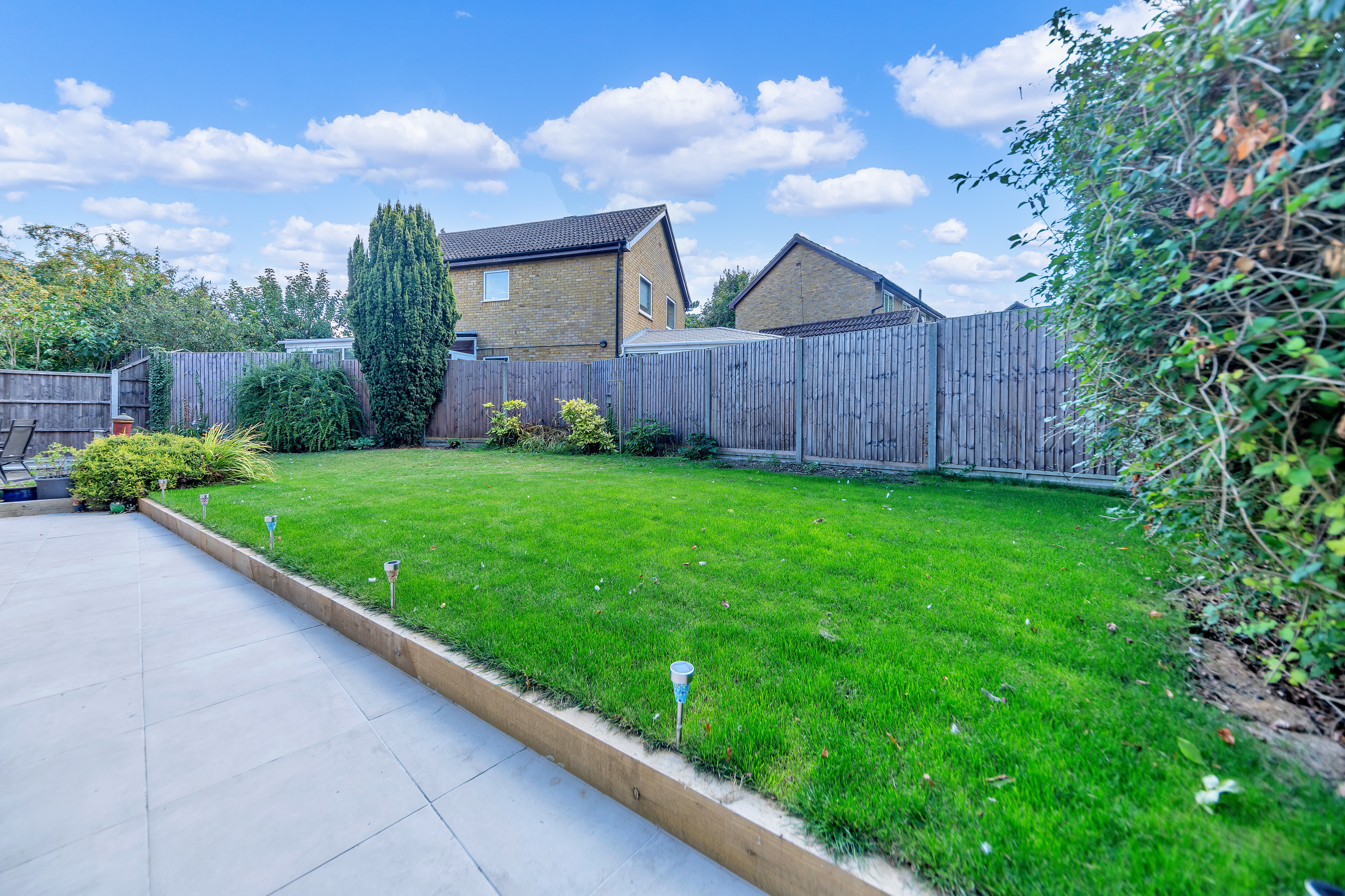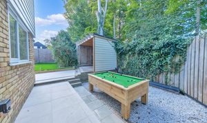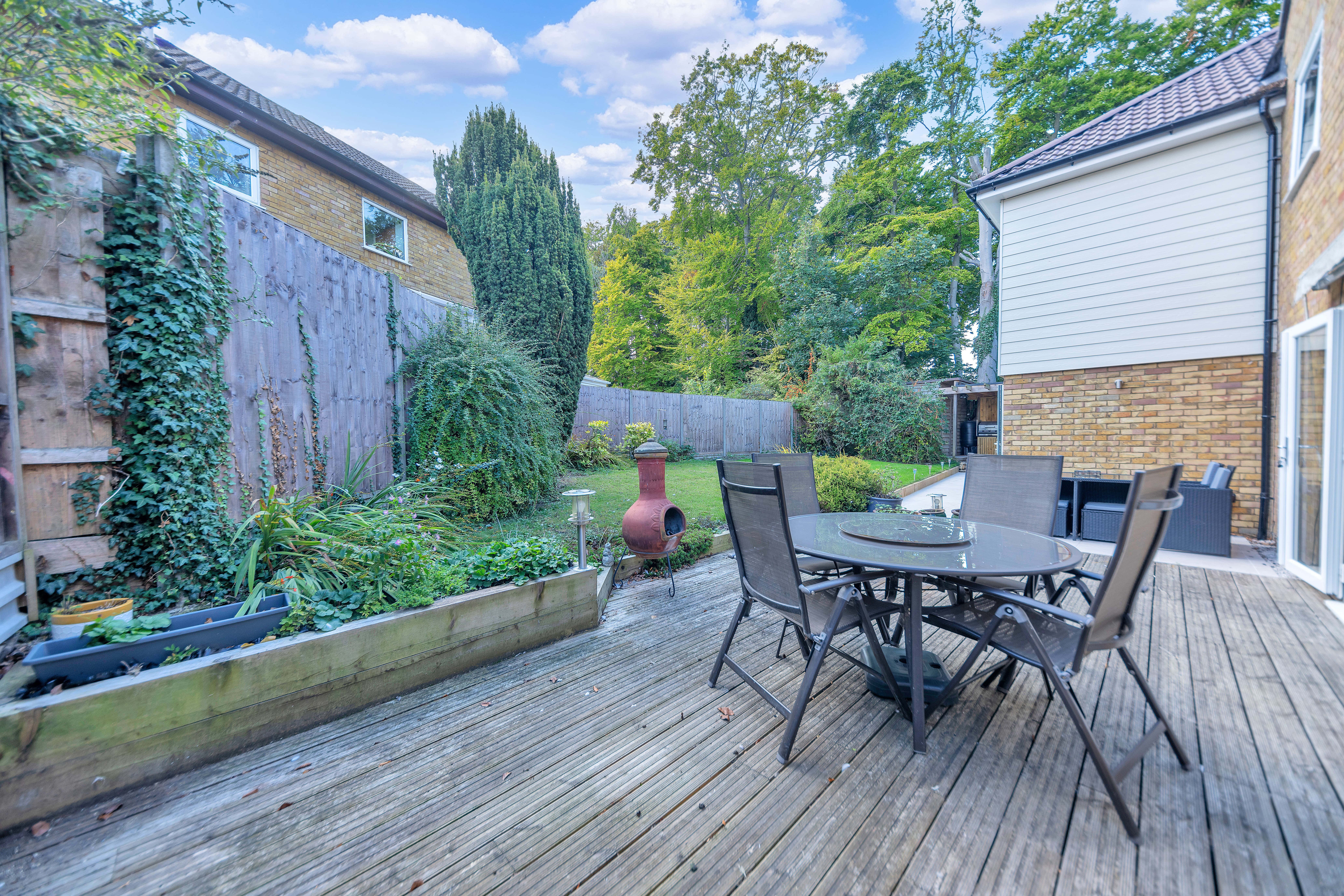 Outside, the rear garden is a fantastic size and has been beautifully landscaped to create a private, sunny space for relaxing and entertaining. It’s mainly laid to lawn, with a wide patio and decking area stretching the full width of the house – perfect for garden furniture, BBQs, or just enjoying the outdoors. The borders and planters are well-stocked with established plants and shrubs, and to the side, there’s a brilliant covered pergola with an outdoor bar with granite worktops, bbq area and double bowl sink with hot and cold water. Steps lead down to a gravelled area that’s great for garden games or extra seating.