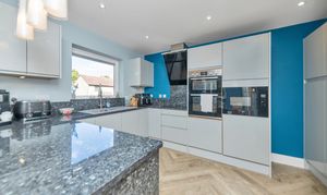 The kitchen/breakfast room is an excellent size, with windows to a front aspect, a wide range of modern base and wall units, granite worktops upstands and window cills, a breakfast bar, Amtico parquet flooring, inset spotlights, an integrated double oven, hob, extractor fan, microwave and dishwasher, space for an American fridge/freezer, breakfast setting, and other small kitchen appliances. The utility room with marble worktops provides further storage, access to the front, access to a downstairs shower room and WC, and space for large laundry appliances.