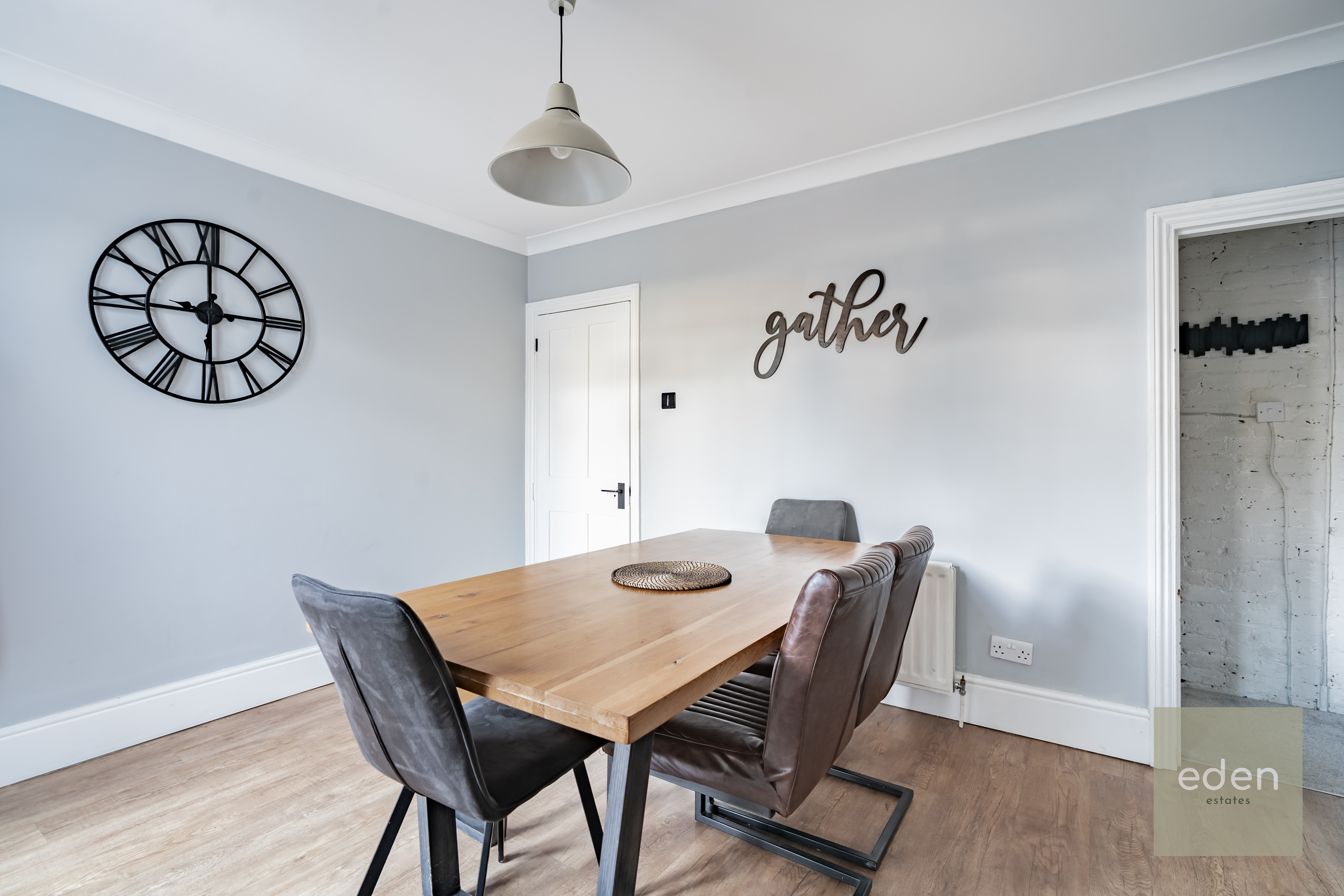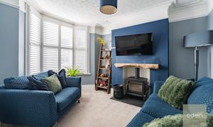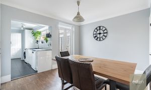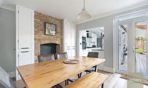Step inside to discover a bright and airy living room, enhanced by a charming wood burning stove and generous proportions that create a warm and welcoming space to relax or entertain friends. Through the beautiful spacious dining room.