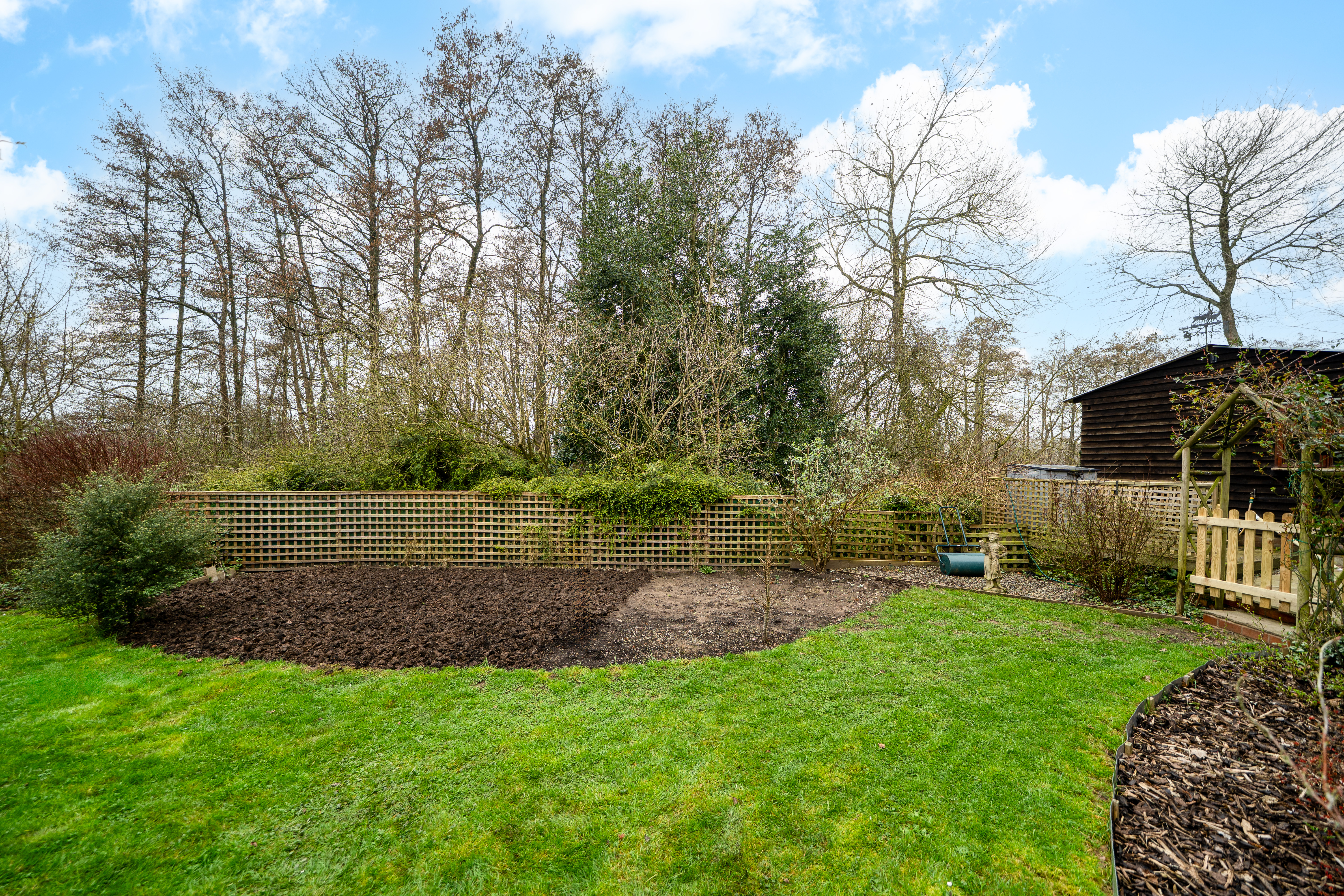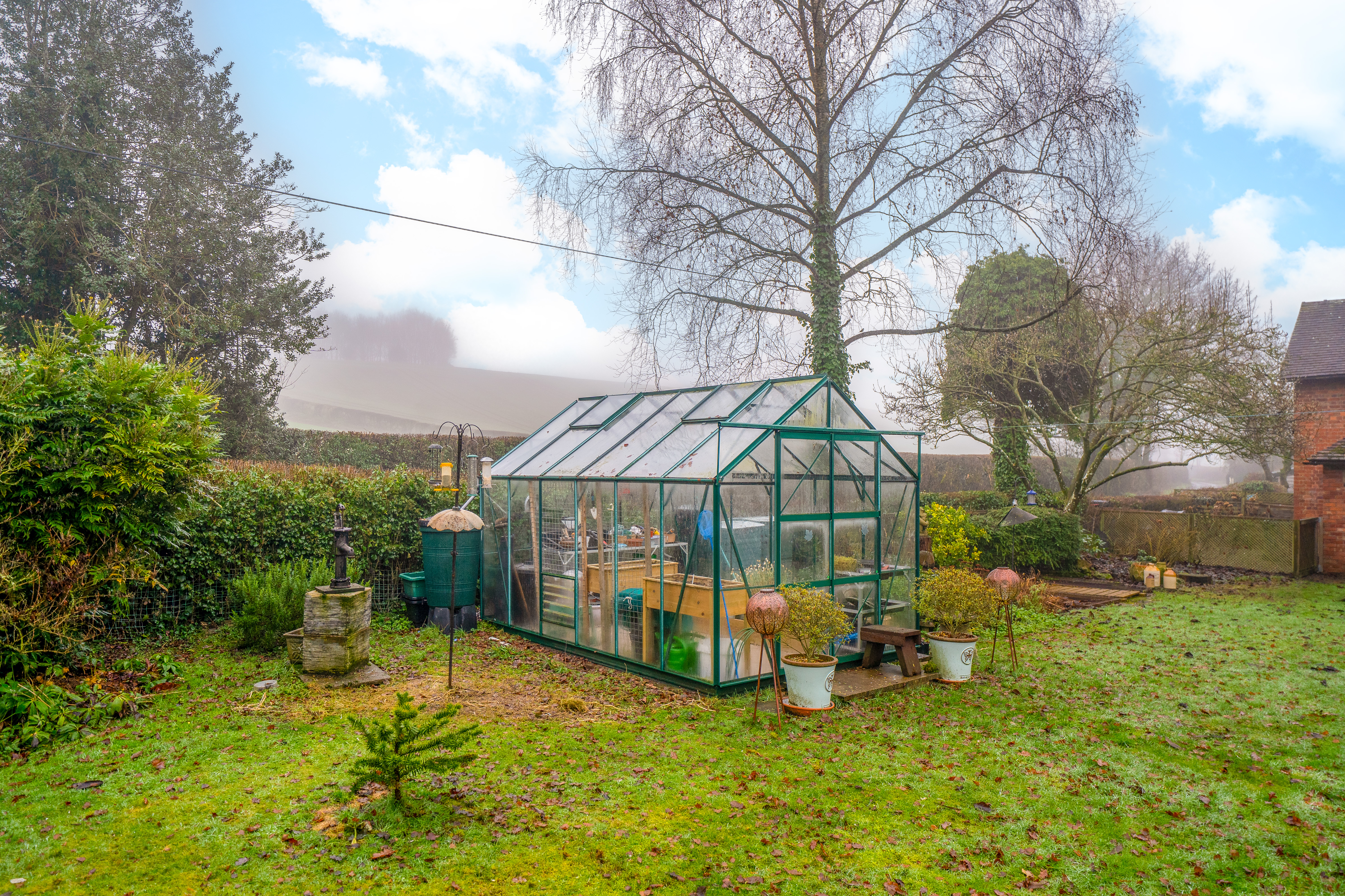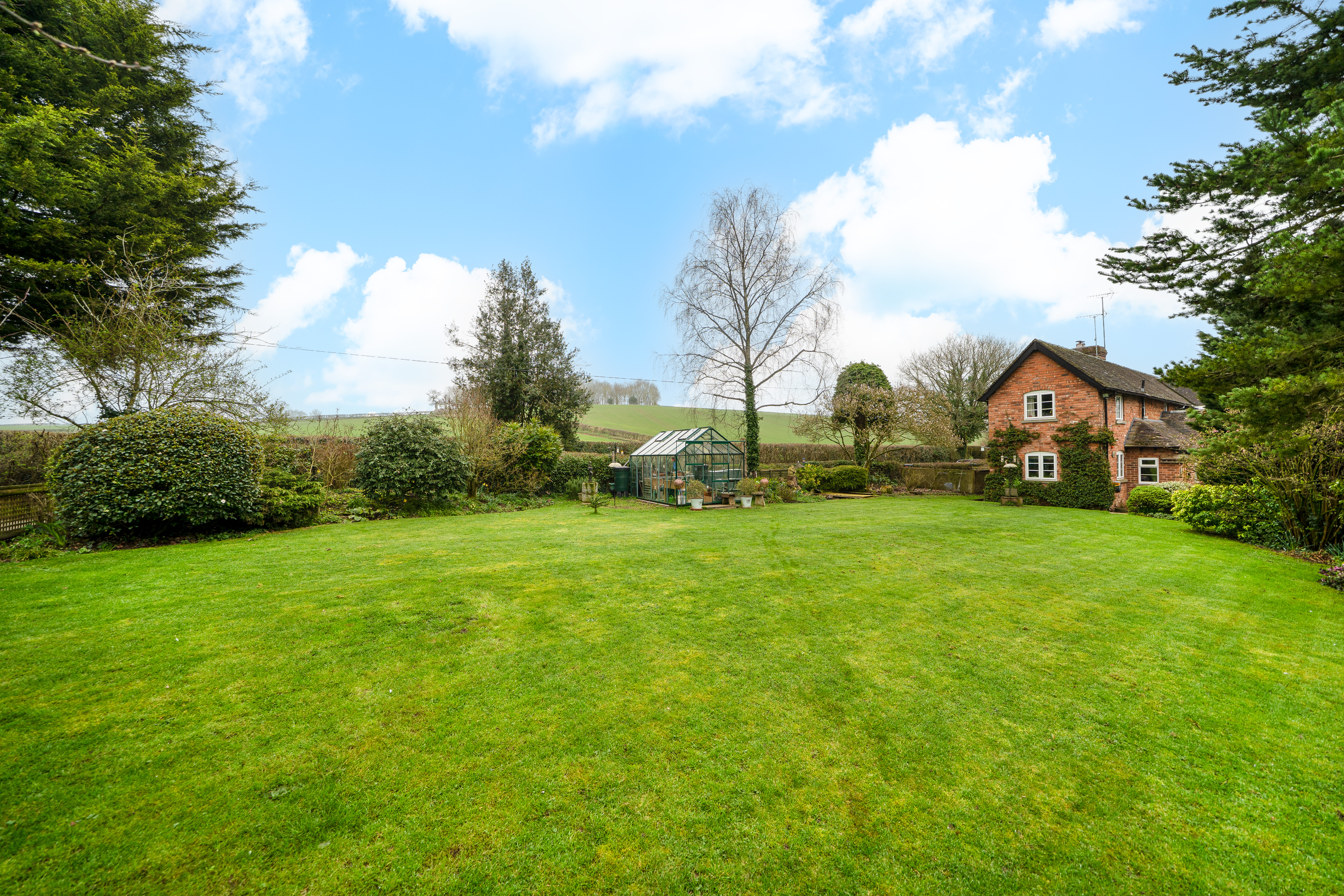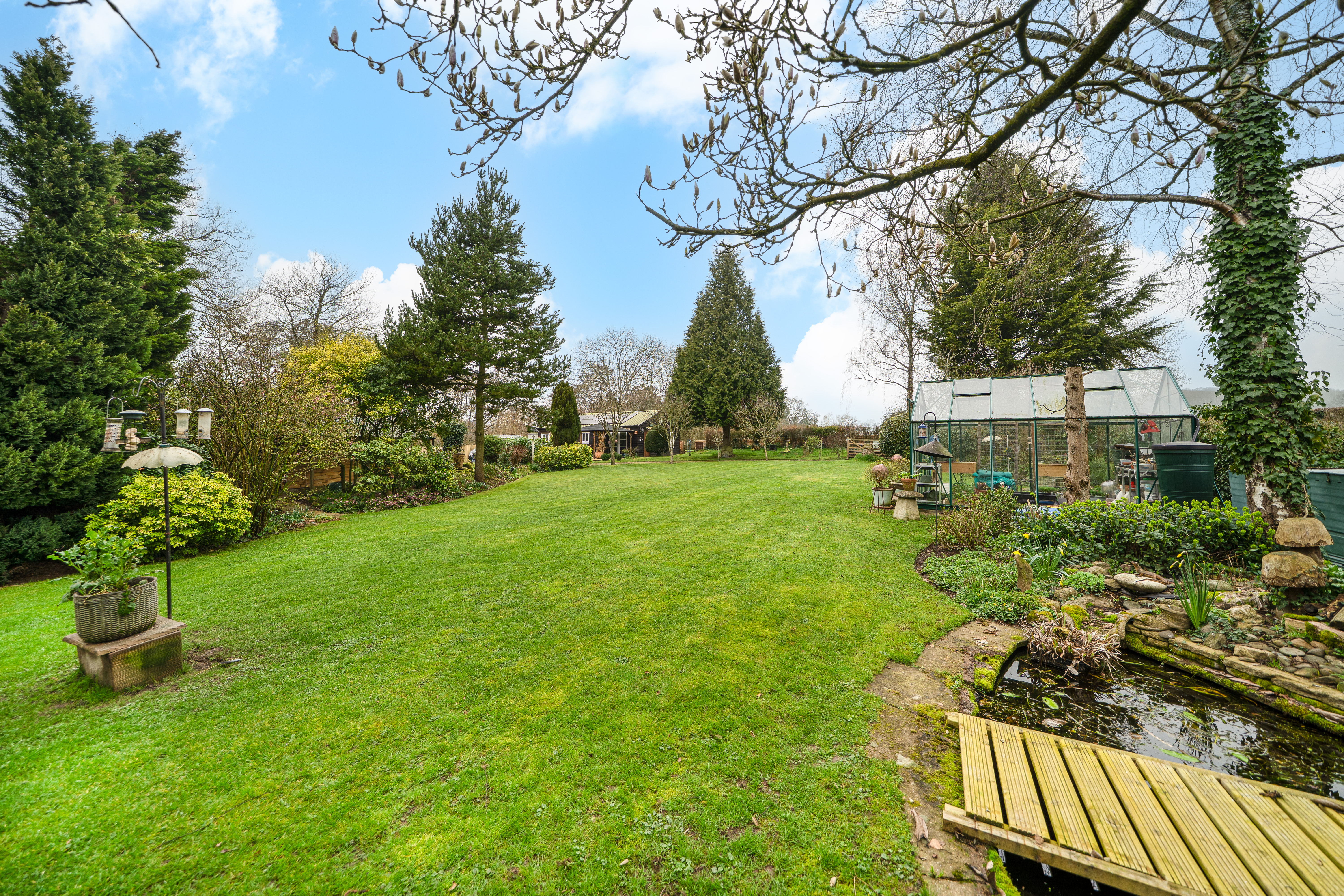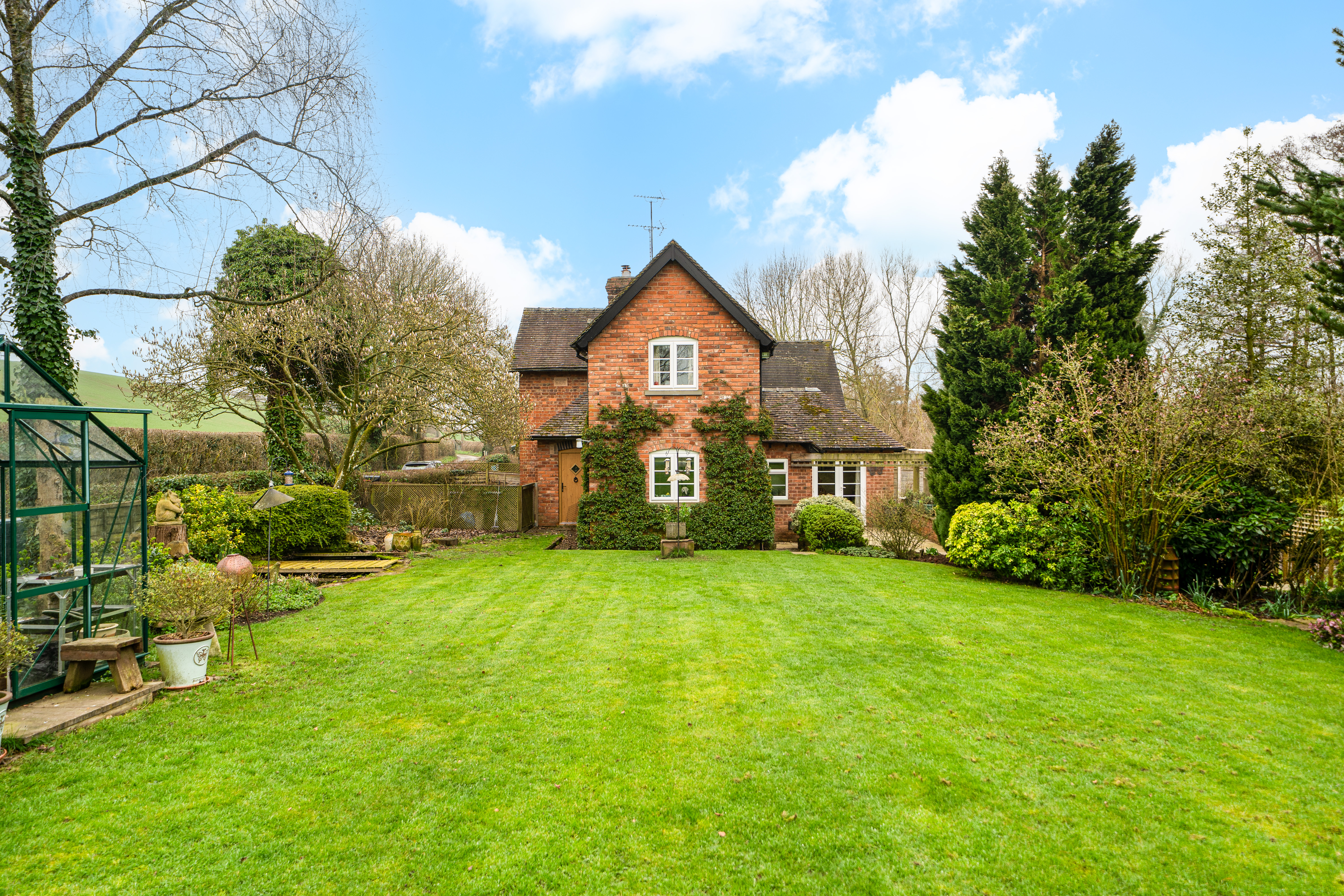 The gardens are a particular highlight of Jay Cottage. Predominantly laid to lawn, they are interspersed with well-stocked borders, mature shrubs and a variety of established trees, providing colour and interest throughout the year. A charming pond forms an attractive focal point, while a paved terrace offers an ideal space for outdoor dining and relaxation. Productive garden areas and a greenhouse will appeal to keen gardeners.