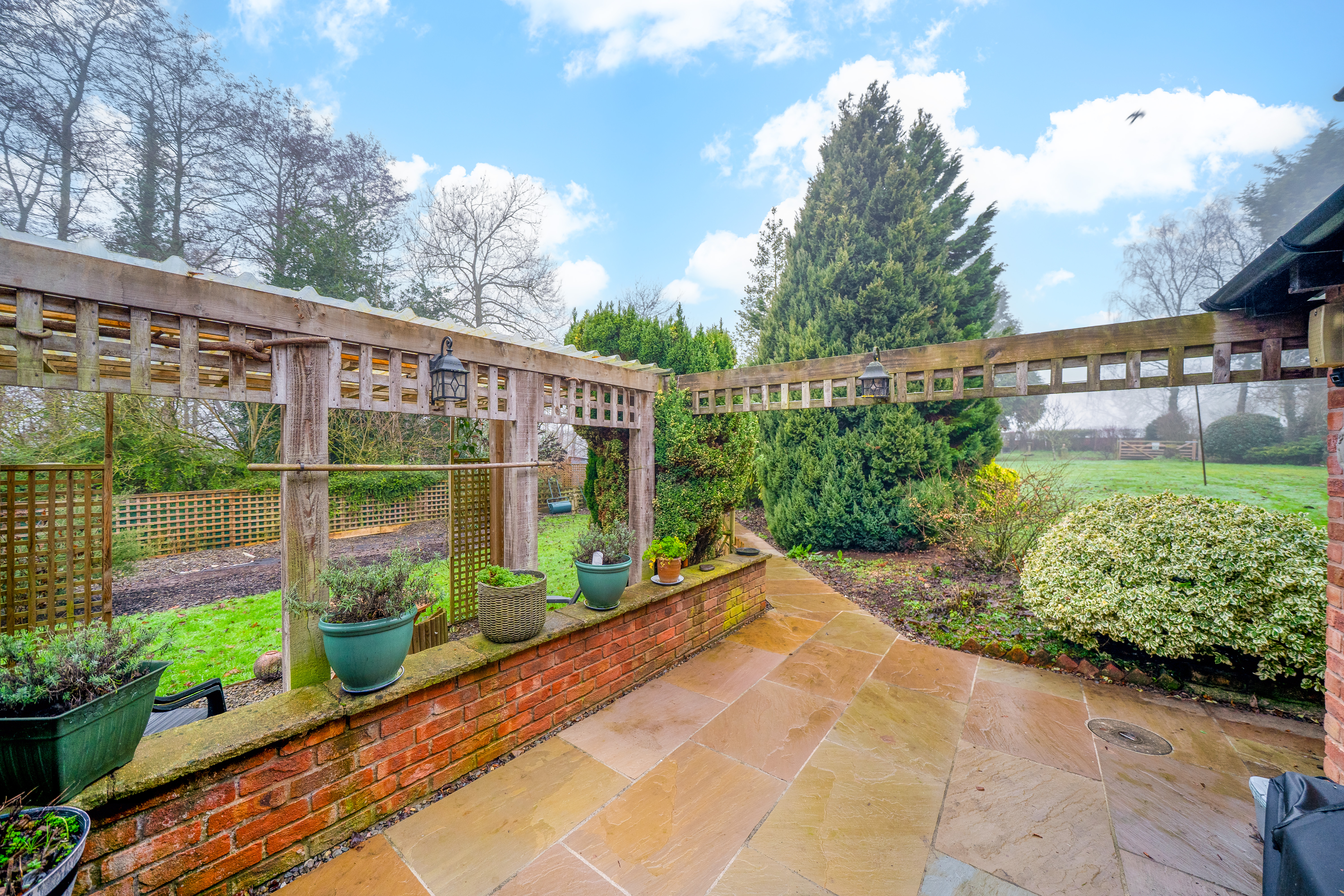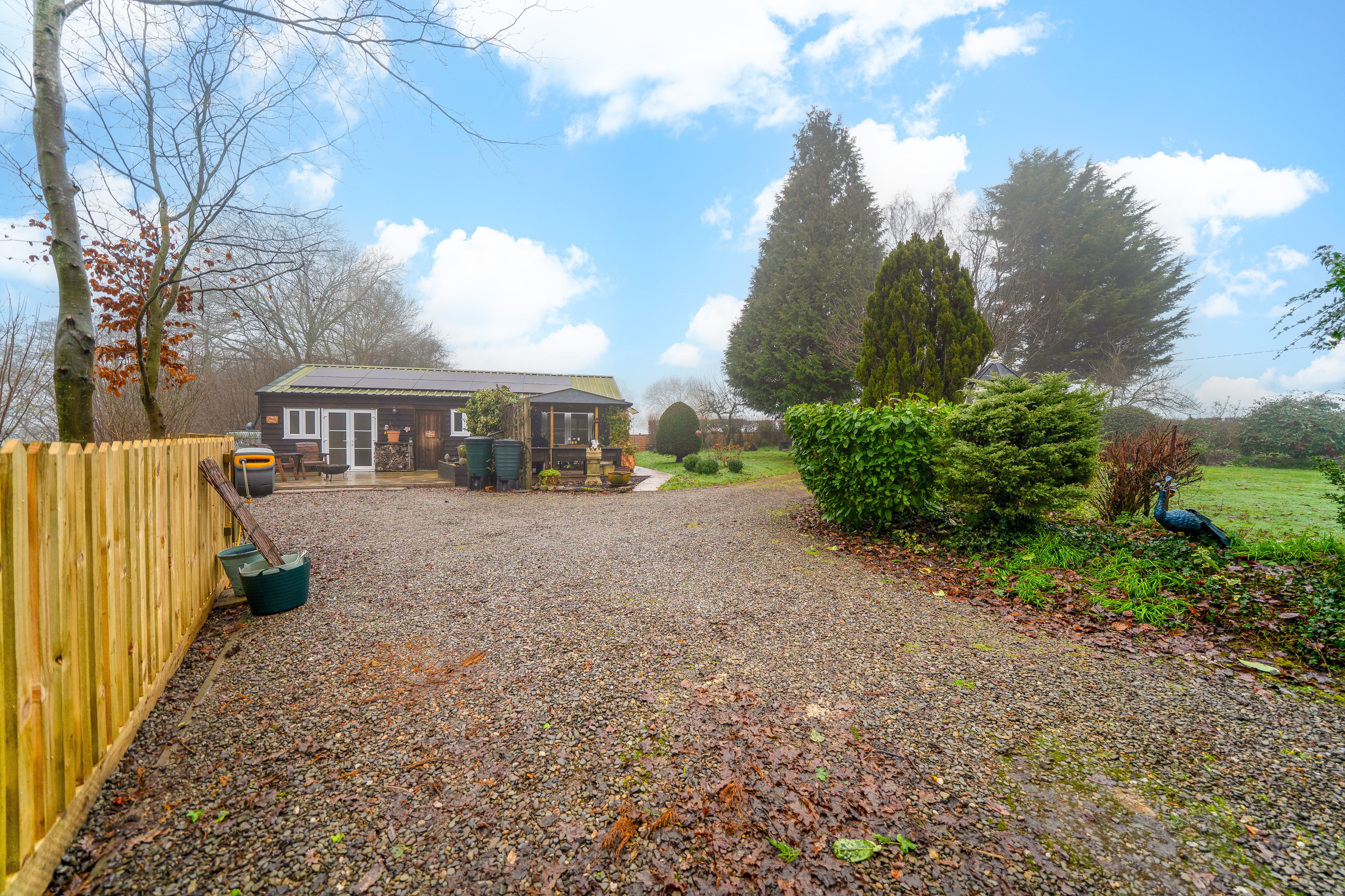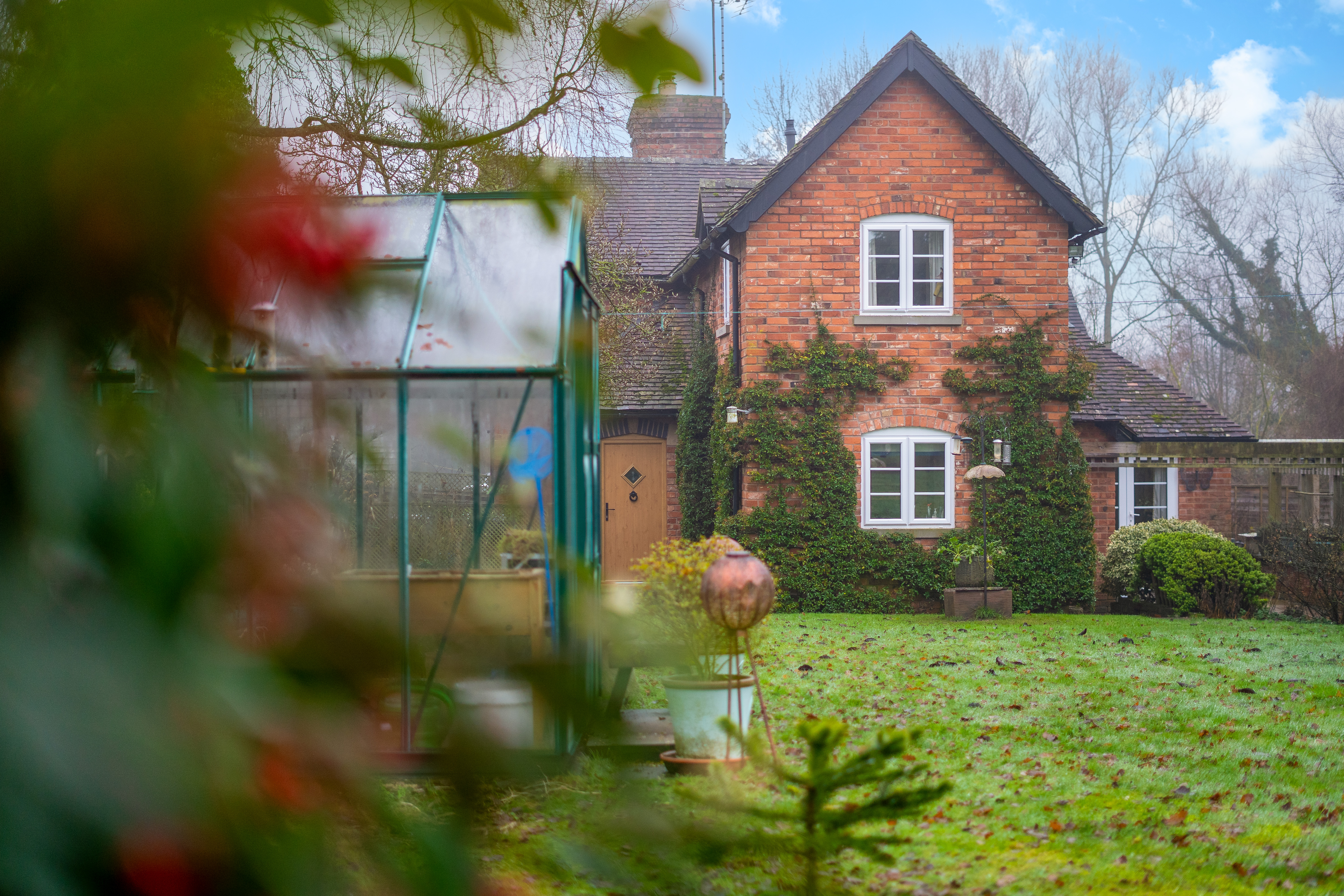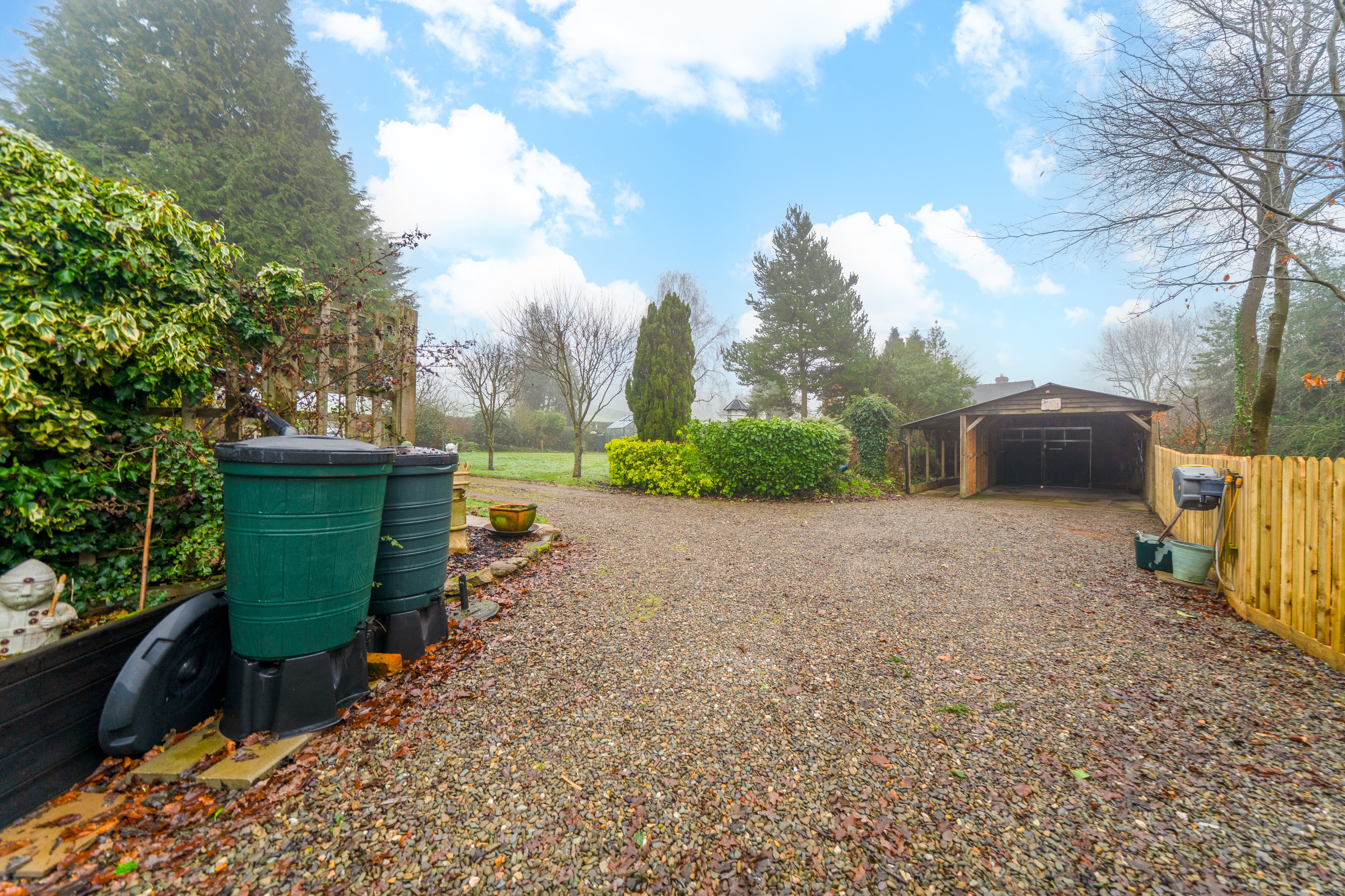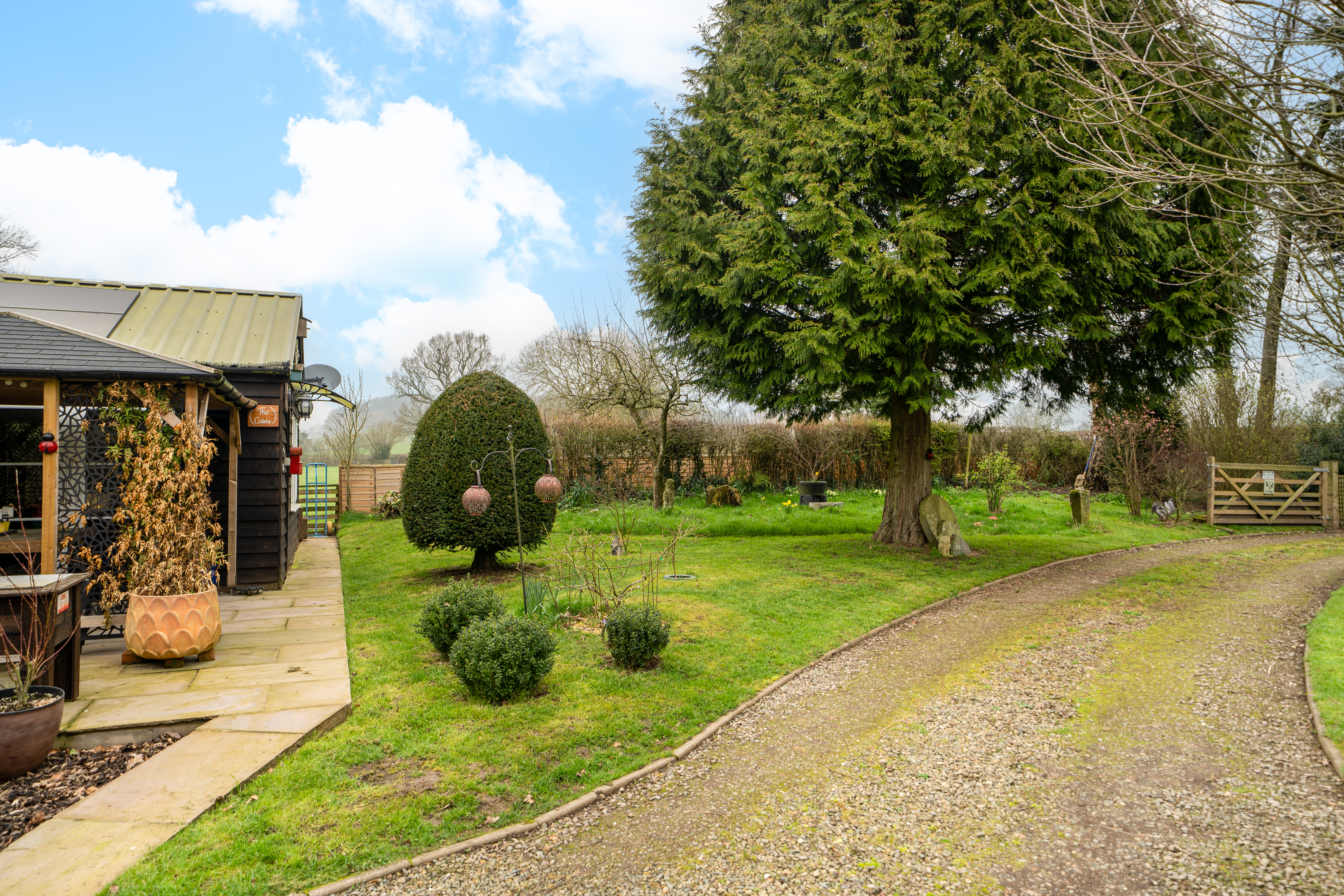 The gardens are a particular highlight of Jay Cottage. Predominantly laid to lawn, they are interspersed with well-stocked borders, mature shrubs and a variety of established trees, providing colour and interest throughout the year. A charming pond forms an attractive focal point, while a paved terrace offers an ideal space for outdoor dining and relaxation. Productive garden areas and a greenhouse will appeal to keen gardeners.