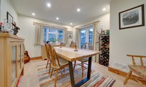 The accommodation is well arranged and successfully combines period character with practical and versatile living space. A porch provides a useful entrance space and leads into the central hall, from which the principal rooms are accessed. The sitting room offers a cosy retreat, centred around a fireplace housing a natural gas log effect stove, while a separate dining room provides an excellent space for entertaining and everyday family use. In addition, a rear porch provides a practical link between the house and garden, offering useful everyday space and currently accommodating a fridge freezer.