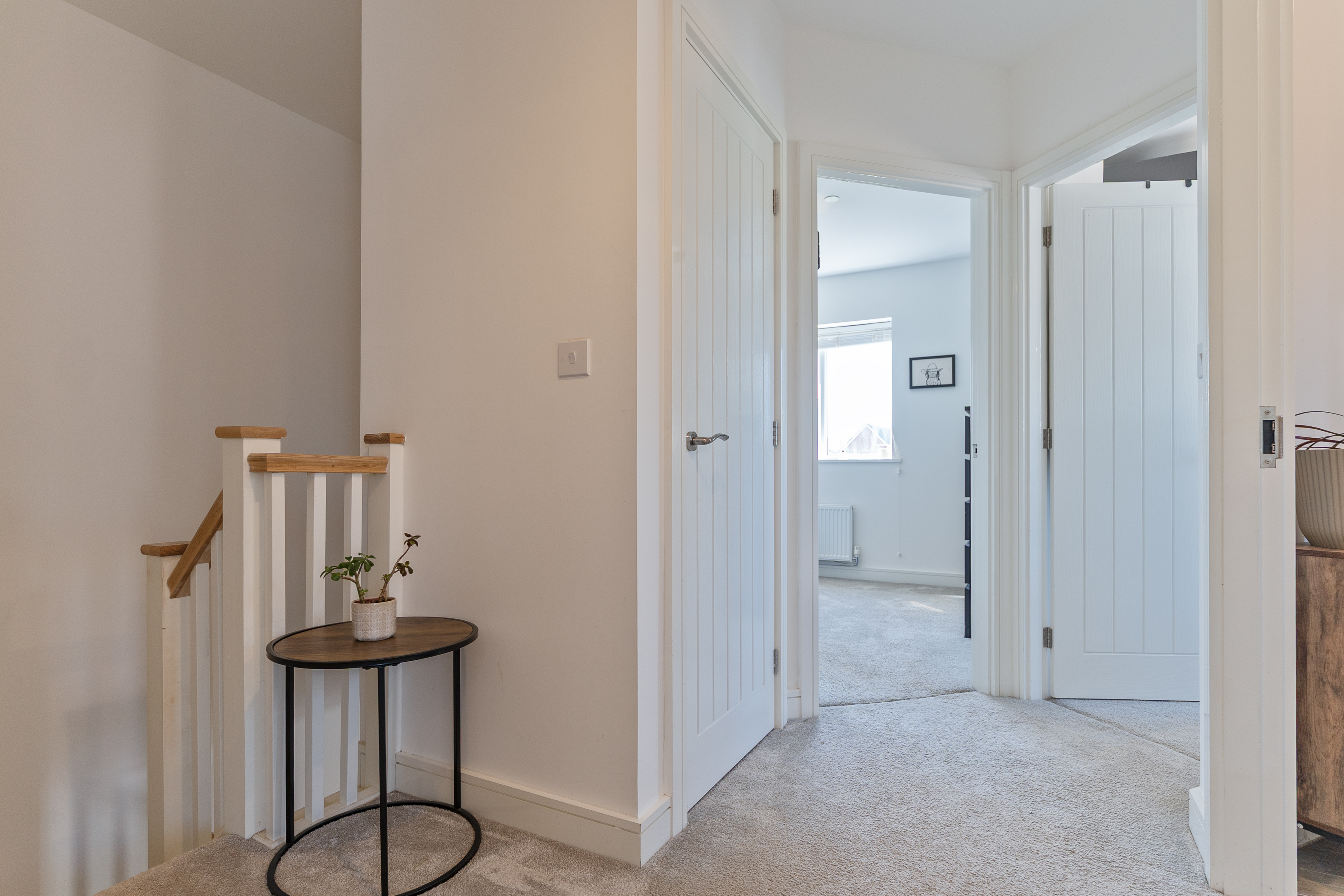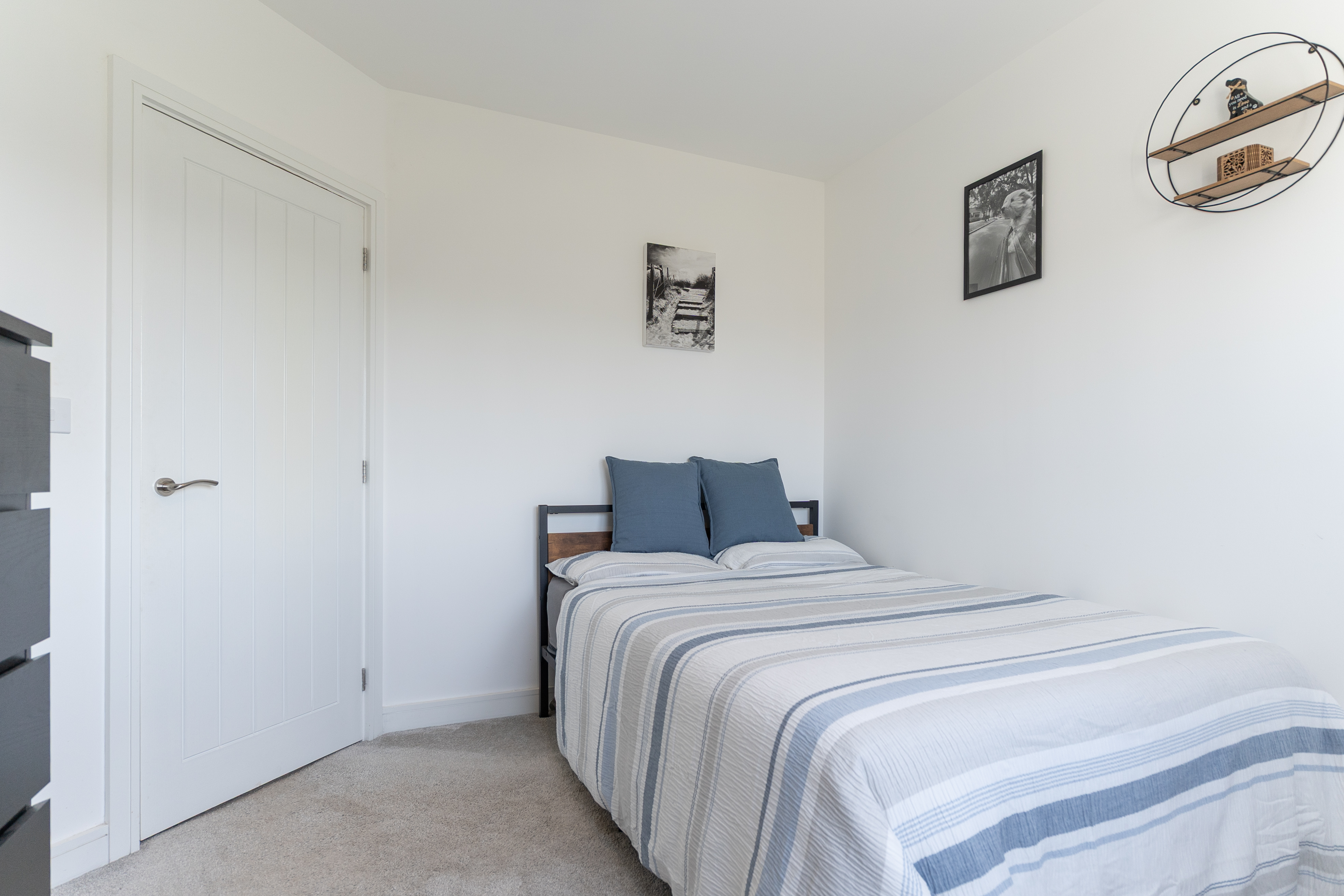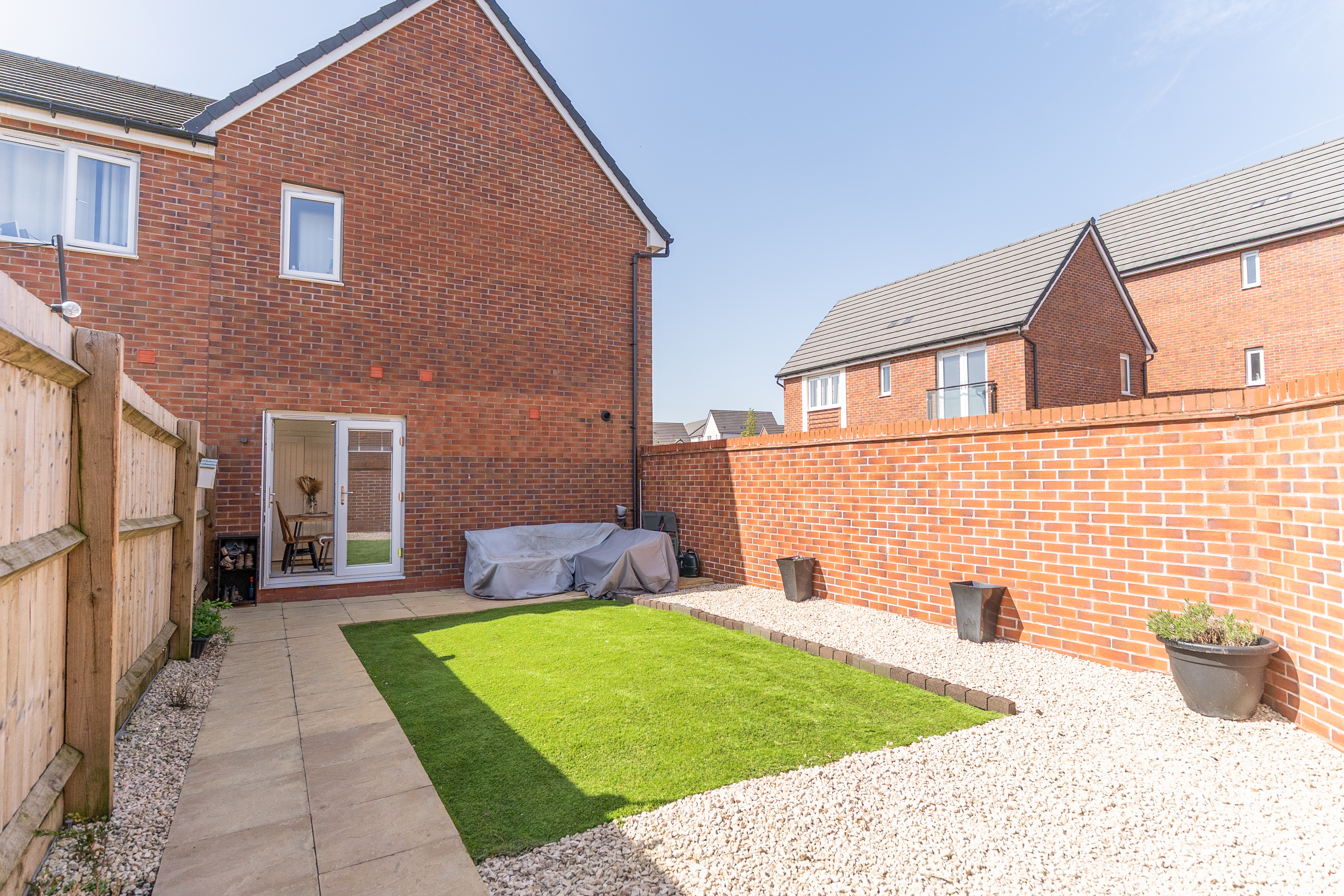 Upstairs, the property offers three well-proportioned bedrooms and a stylish family bathroom. The primary bedroom includes built-in wardrobes and a private en-suite shower room. The remaining two bedrooms are ideal for children, guests or a home office.