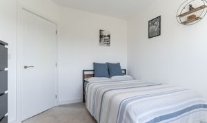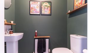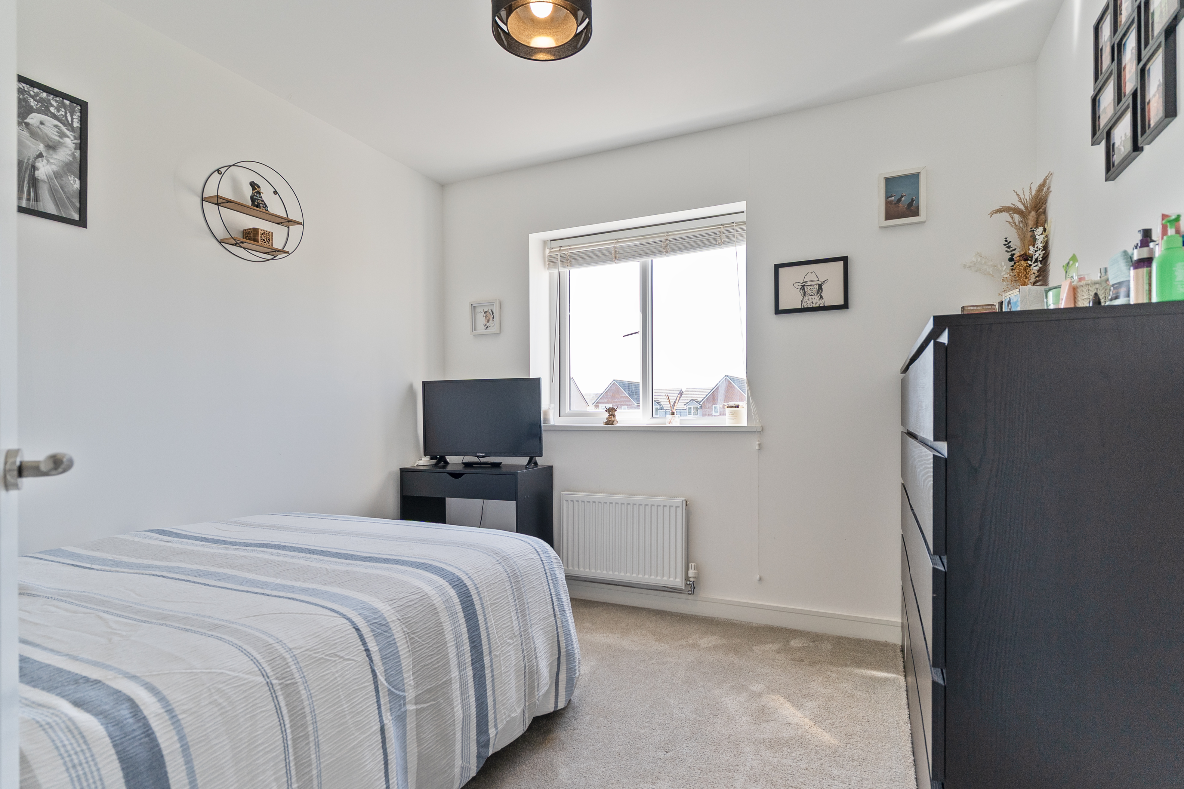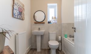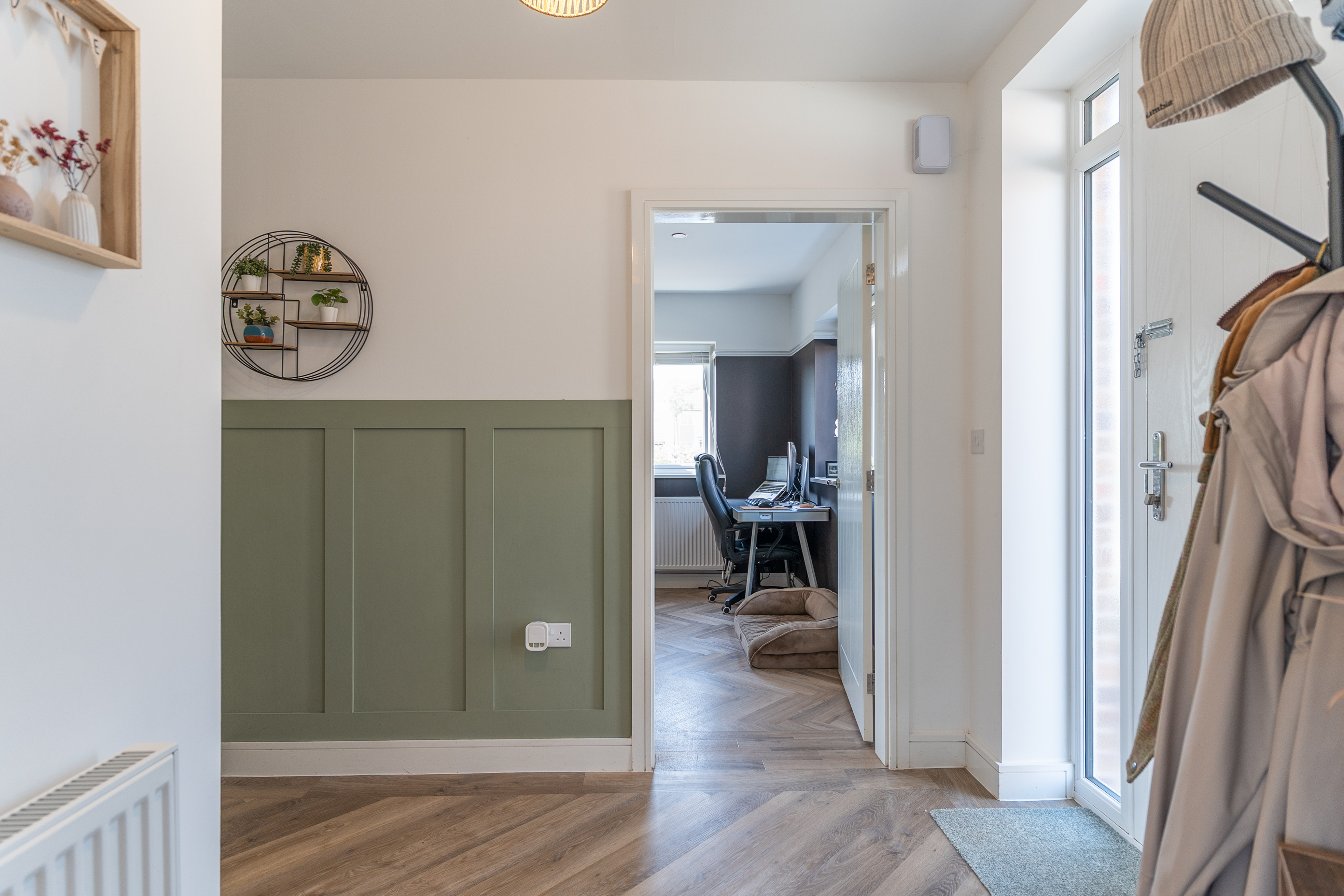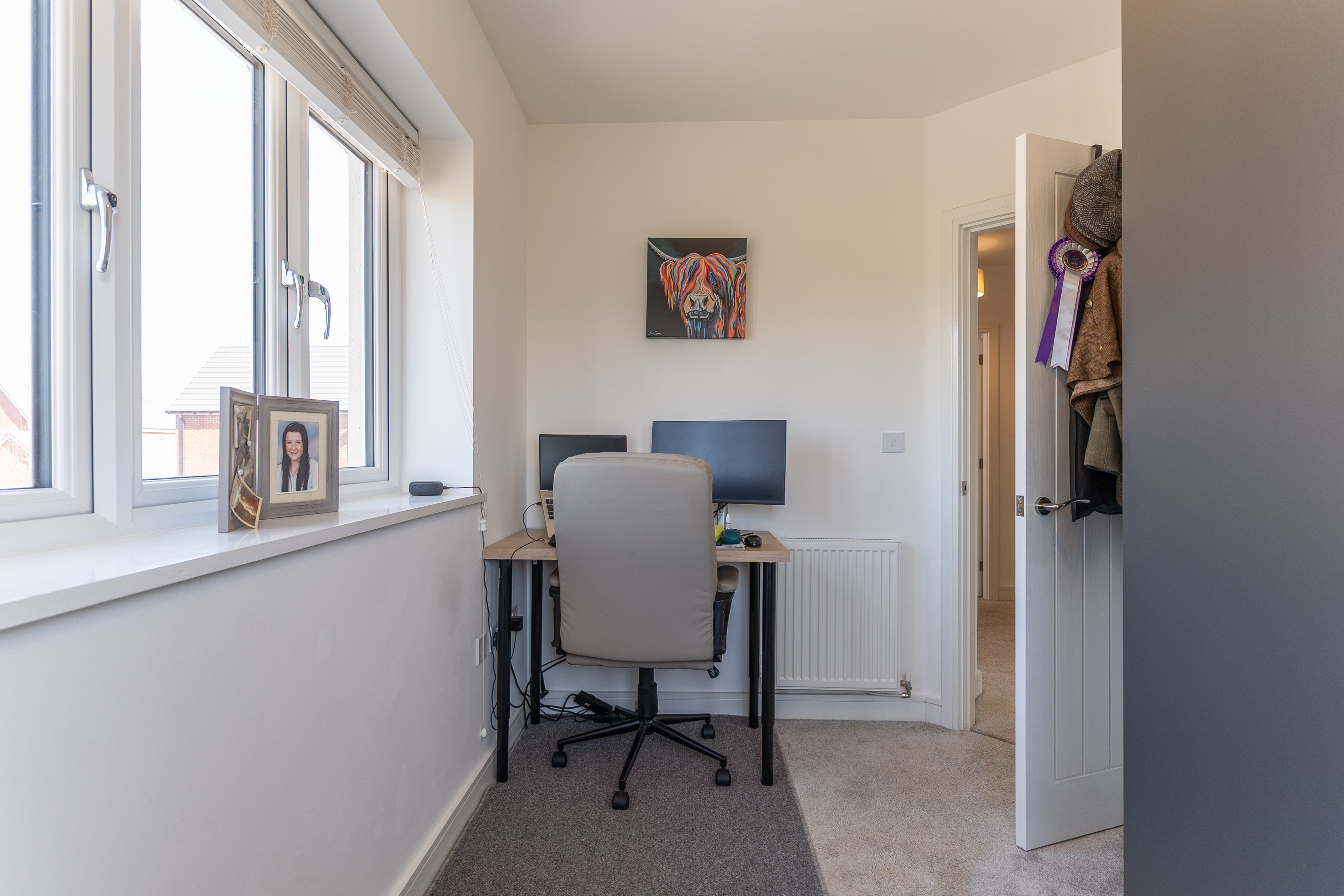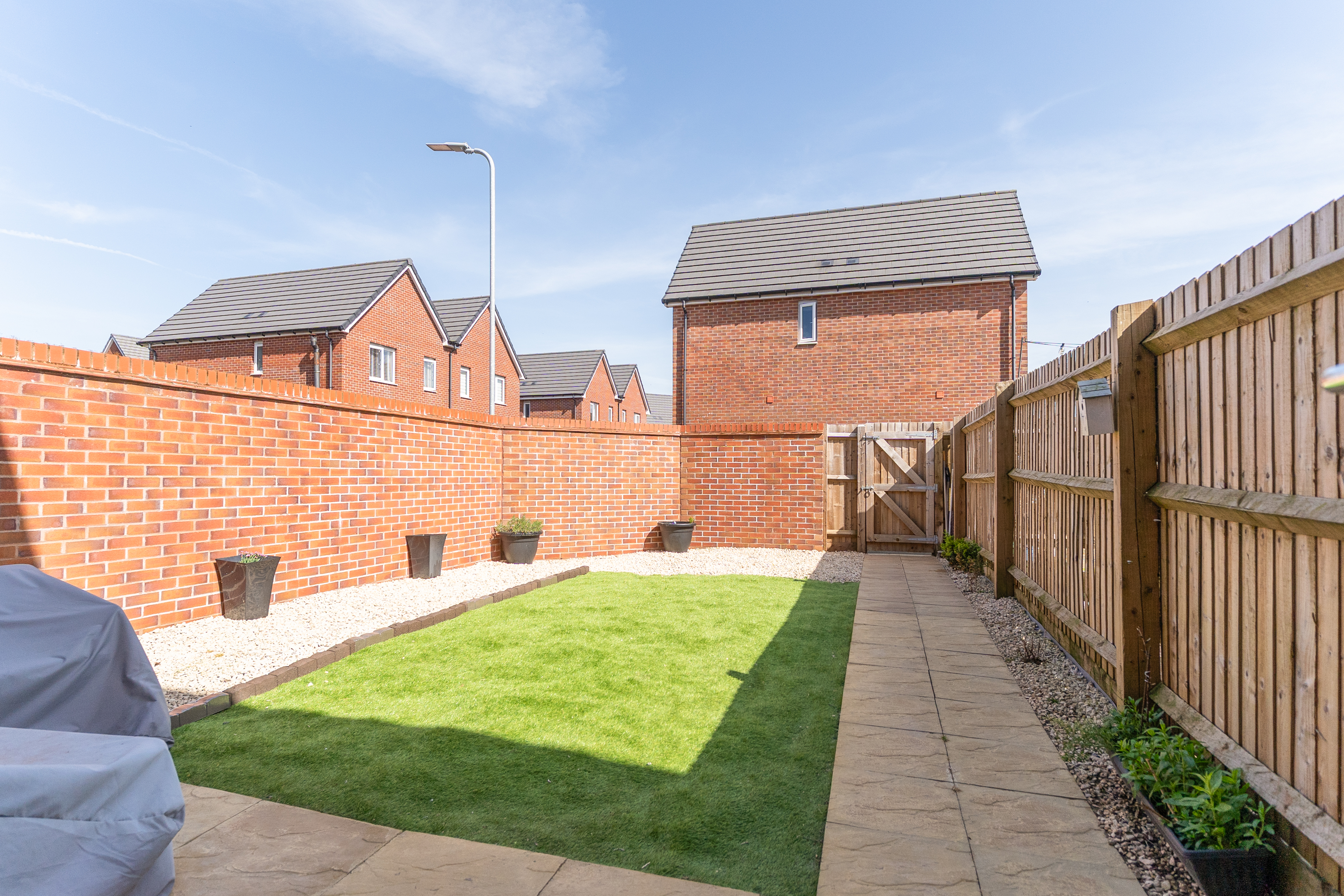 Upstairs, the property offers three well-proportioned bedrooms and a stylish family bathroom. The primary bedroom includes built-in wardrobes and a private en-suite shower room. The remaining two bedrooms are ideal for children, guests or a home office.
