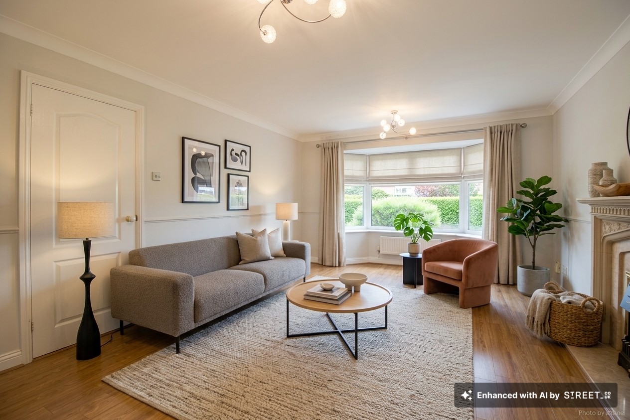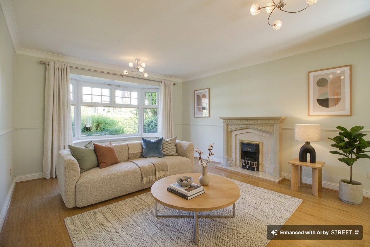 Bay window to the front, feature fireplace with inset gas fire, radiator and laminate wood flooring. Double doors leading to the Dining Room.