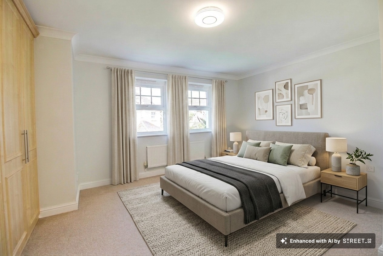 Windows to the front, fitted wardrobes, radiator and fitted carpet.