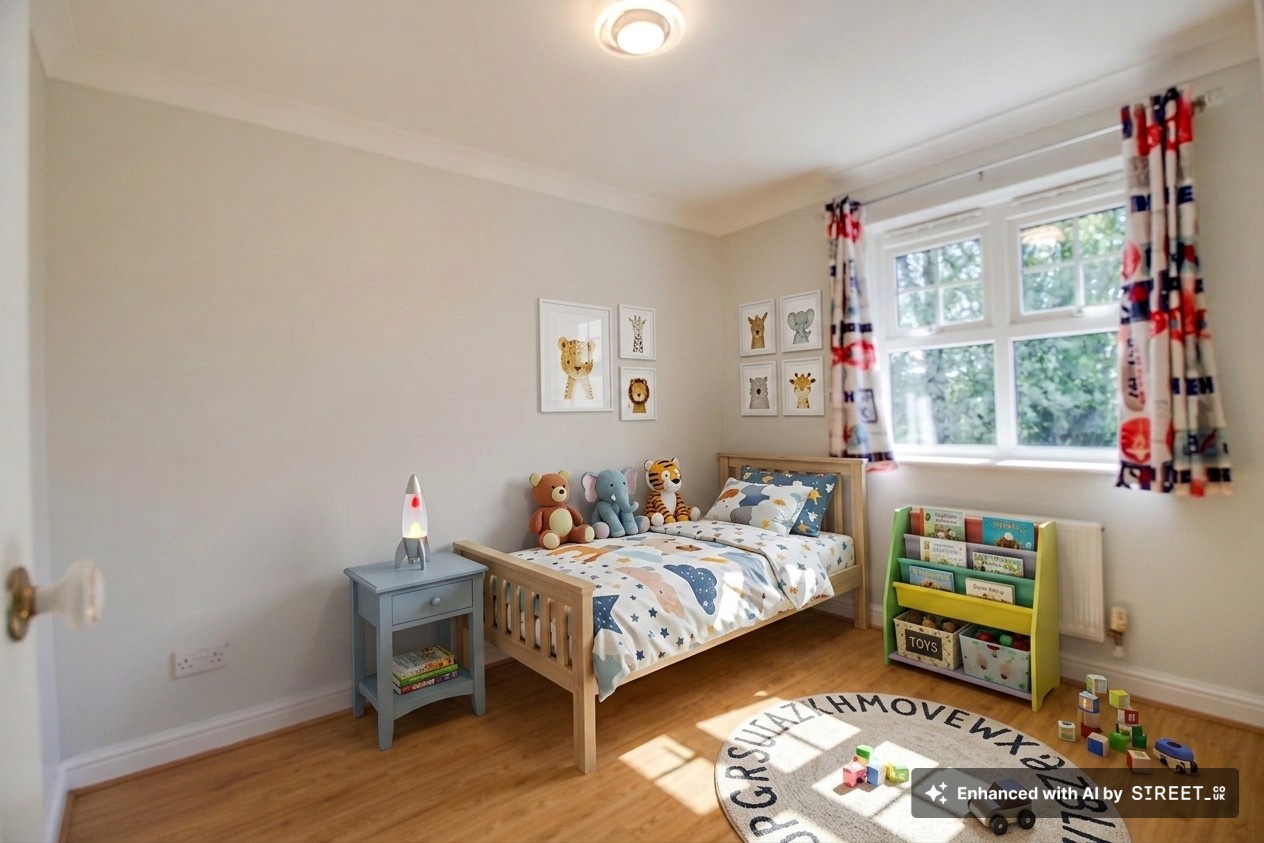 Windows to the rear, fitted wardrobes, radiator and laminate wood flooring.