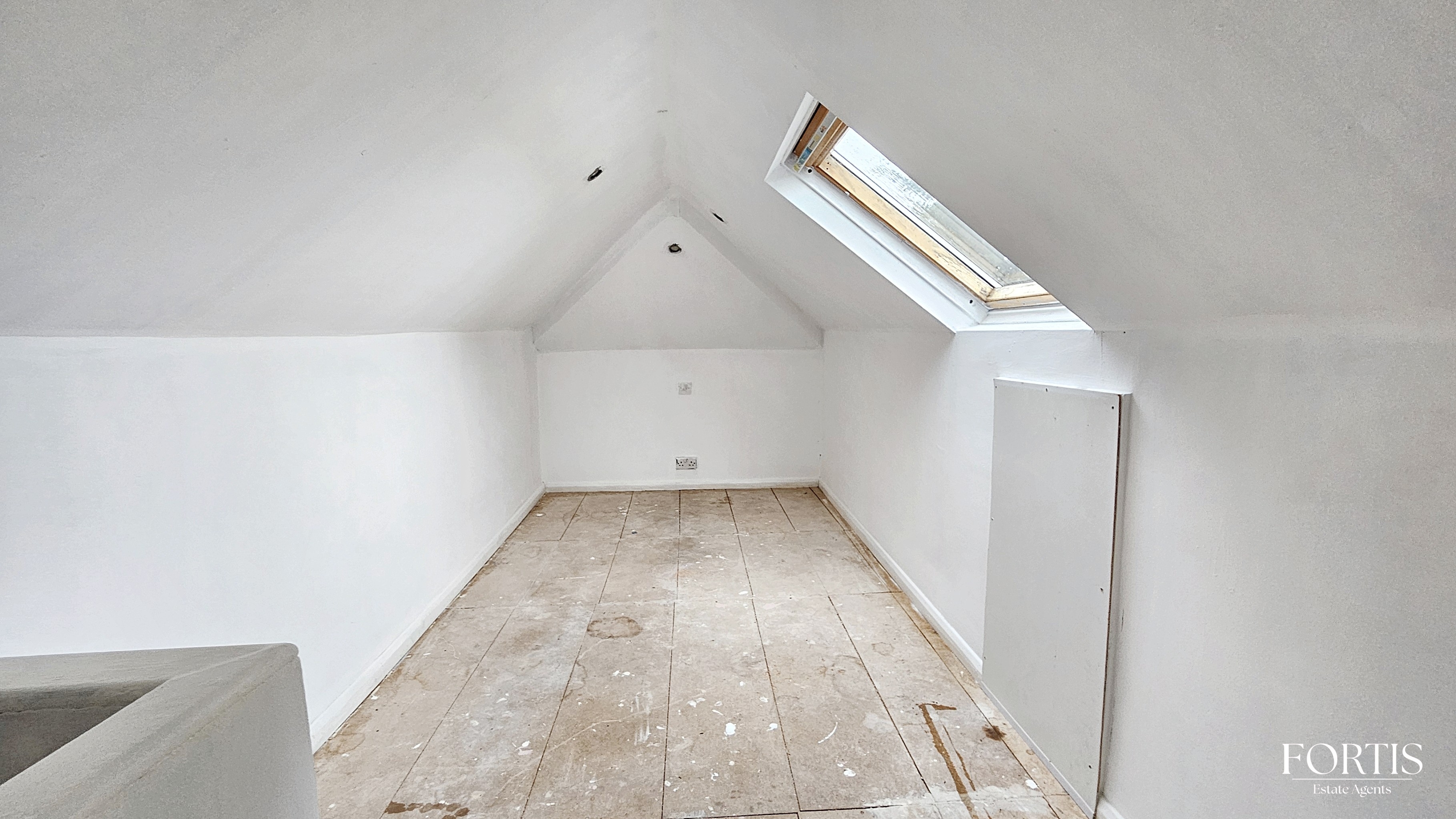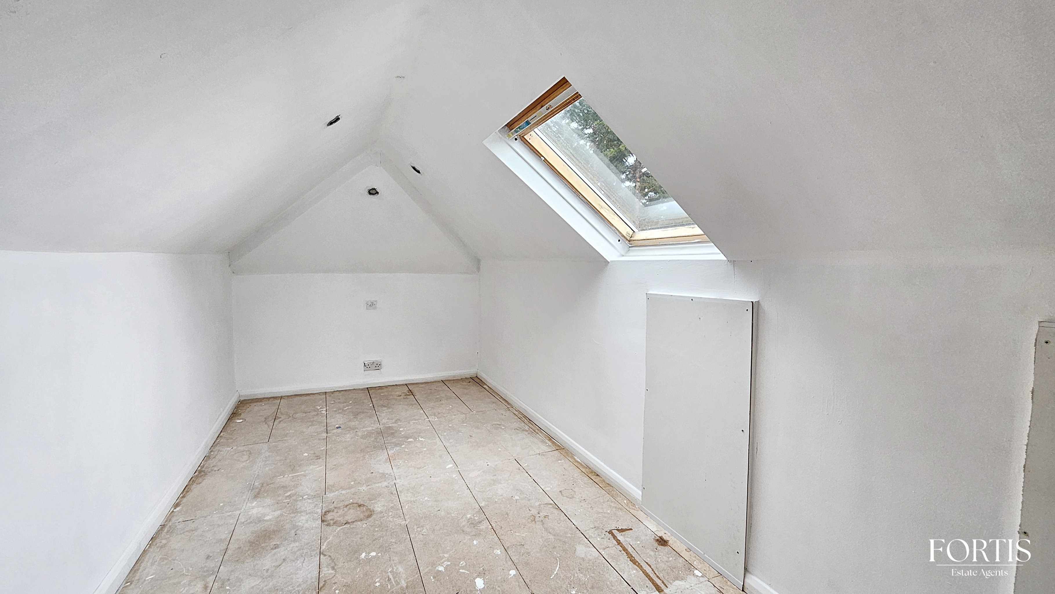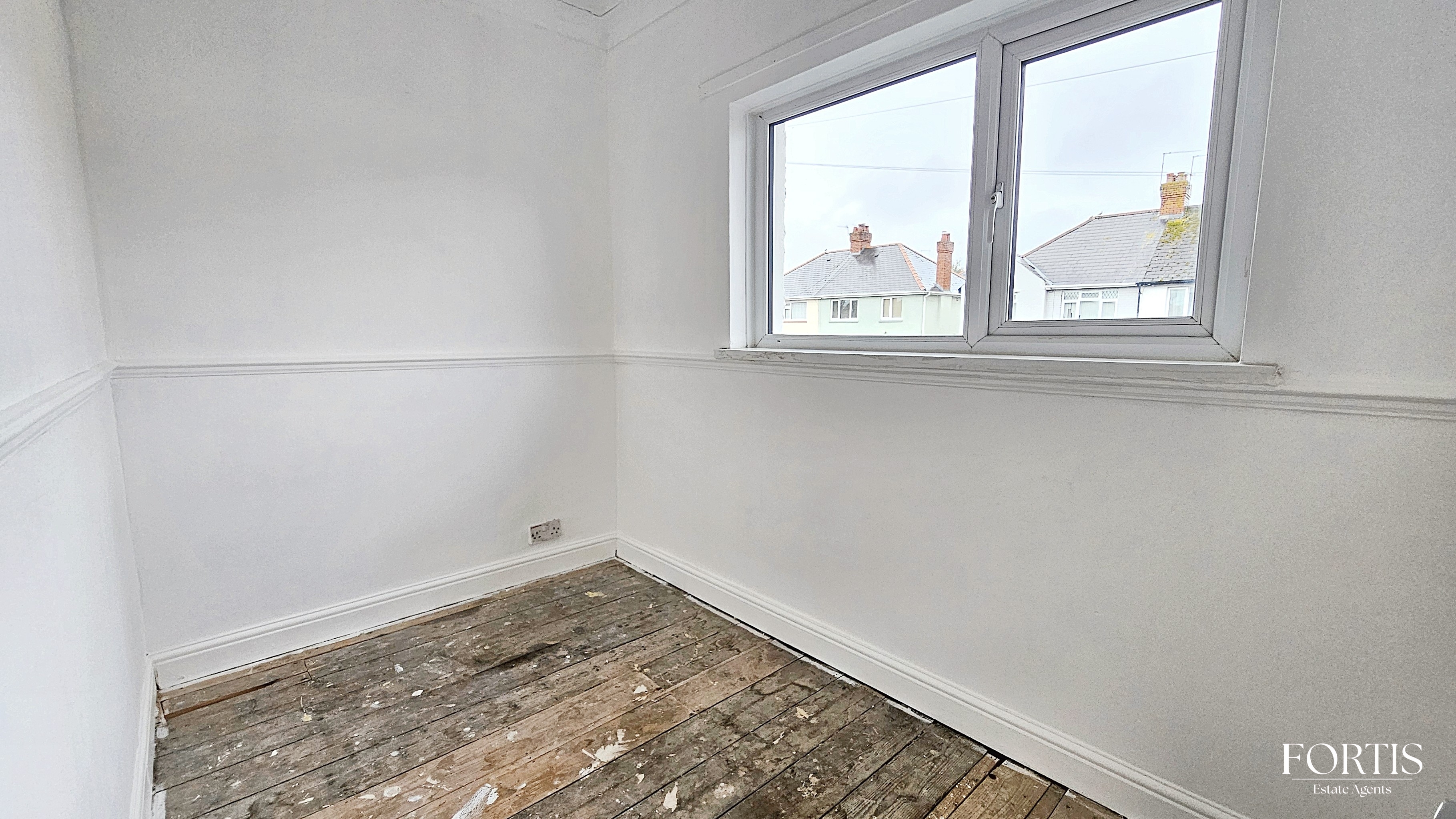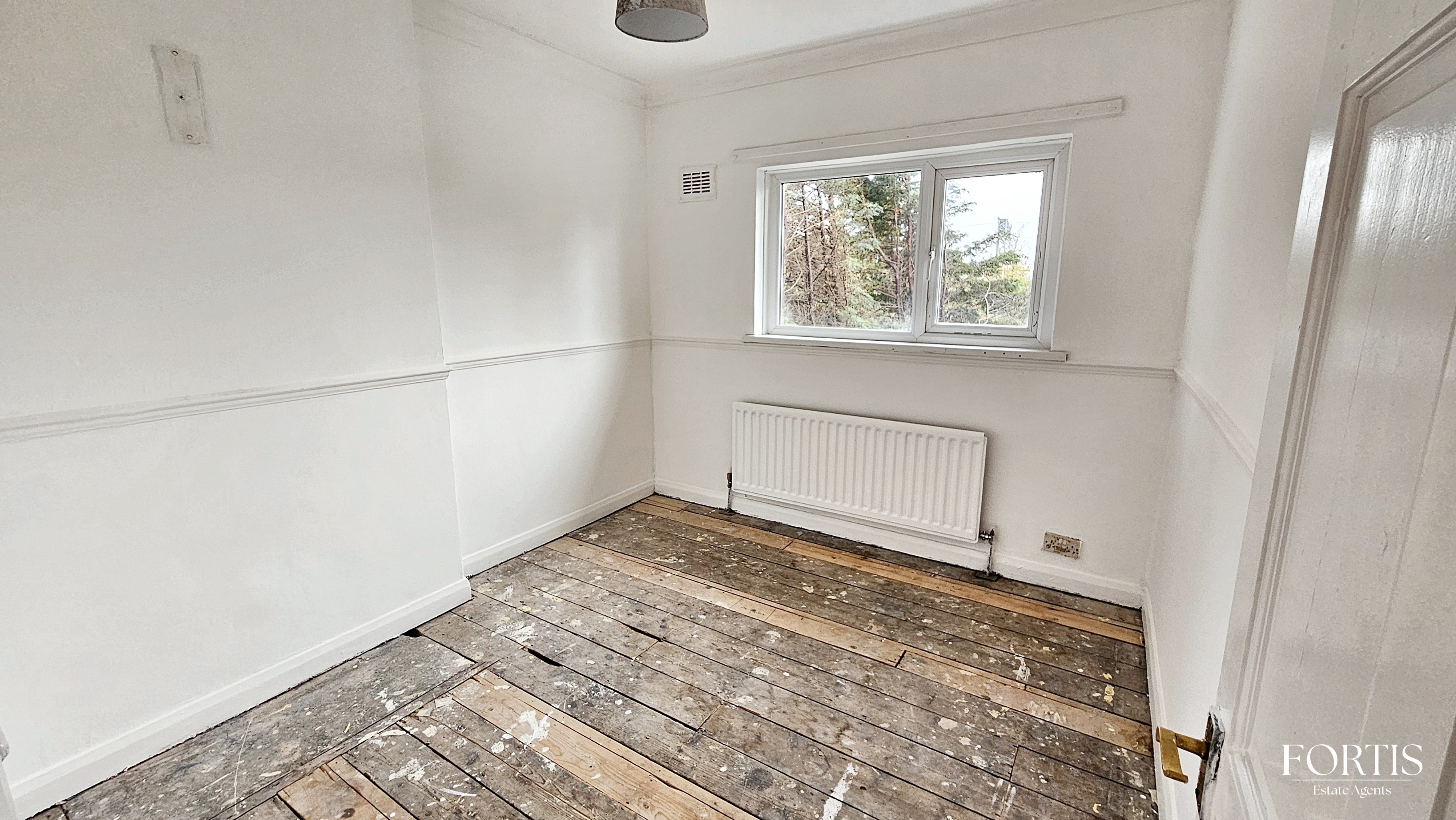 Double glazed rear aspect window, ceiling light point, radiator, dado rail.