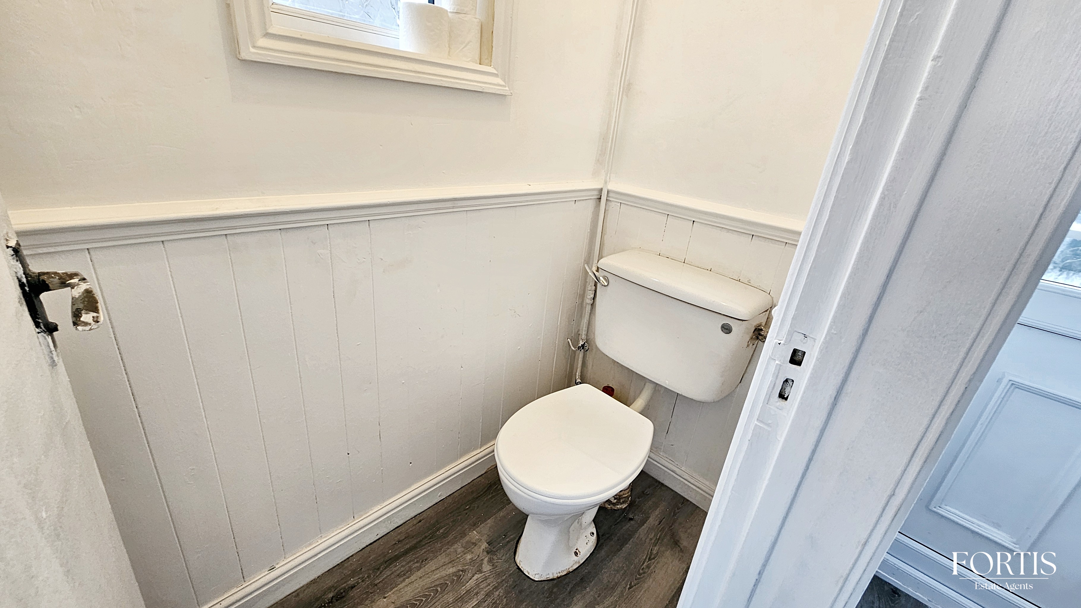Low level WC, wood effect flooring, double glazed side aspect window, ceiling light point.