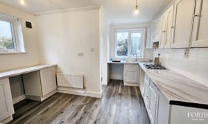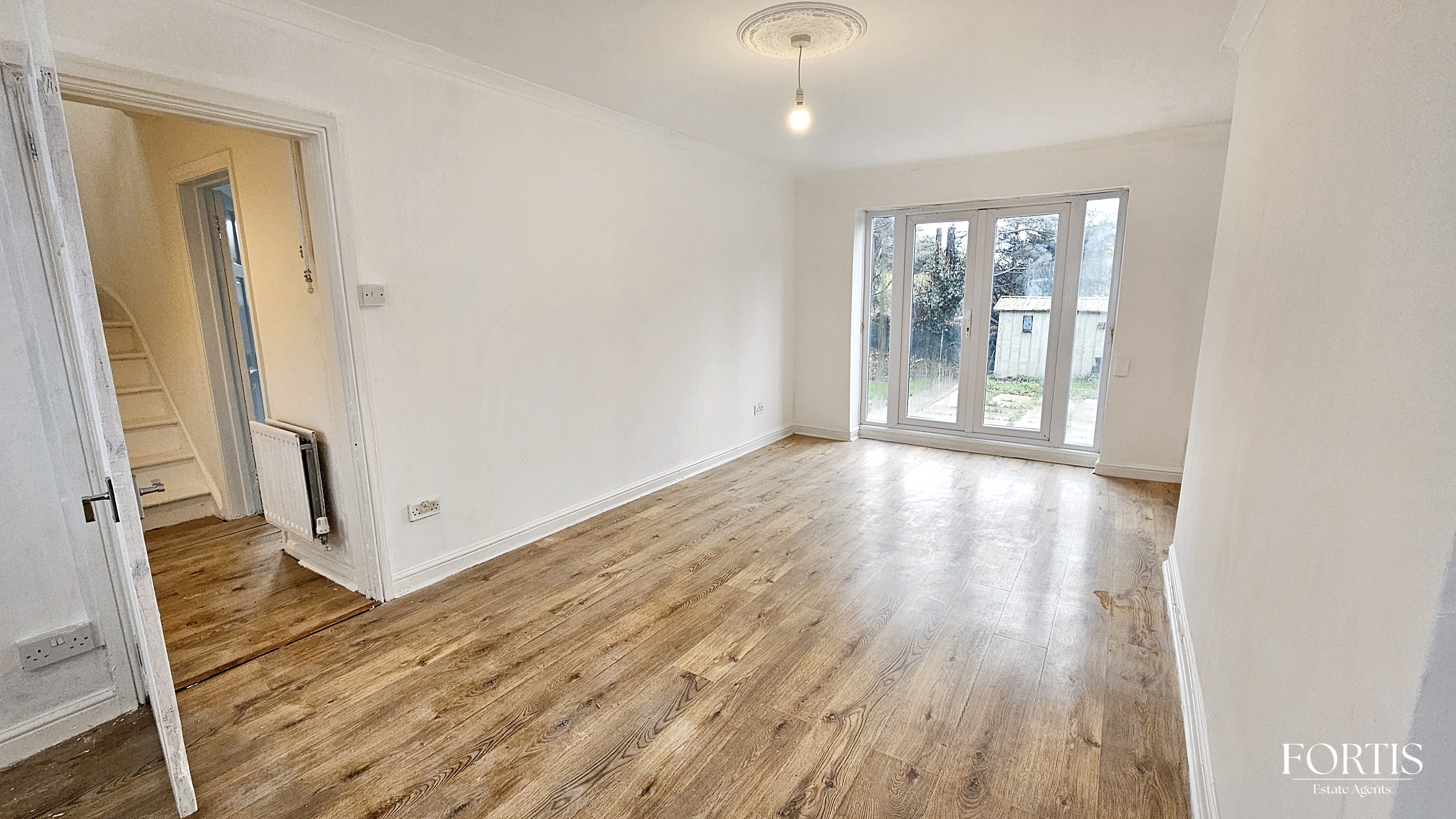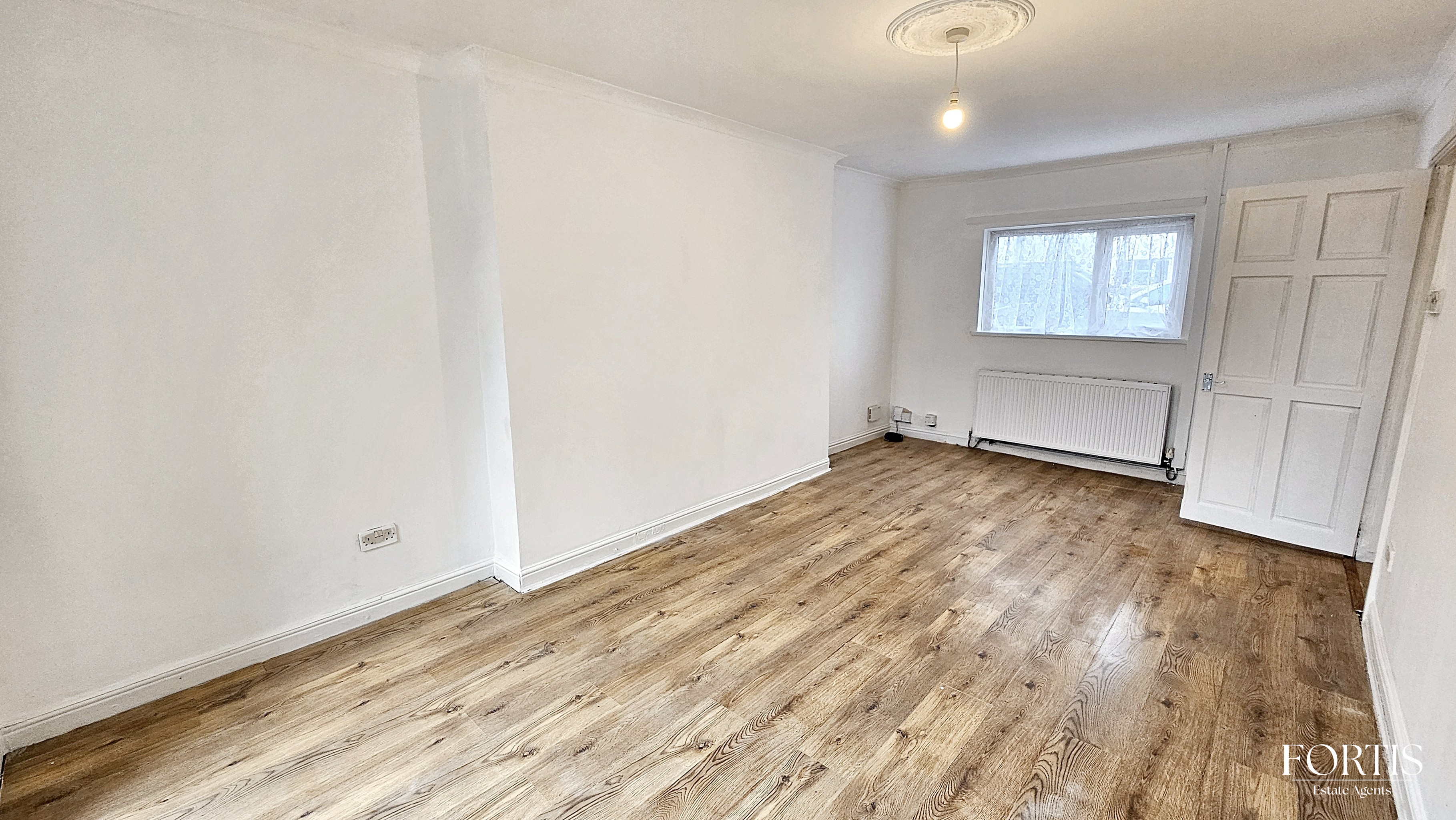 A good sized living / dining room with double glazed front aspect window, double glazed French styled double doors to the rear, laminate wood flooring, radiator.