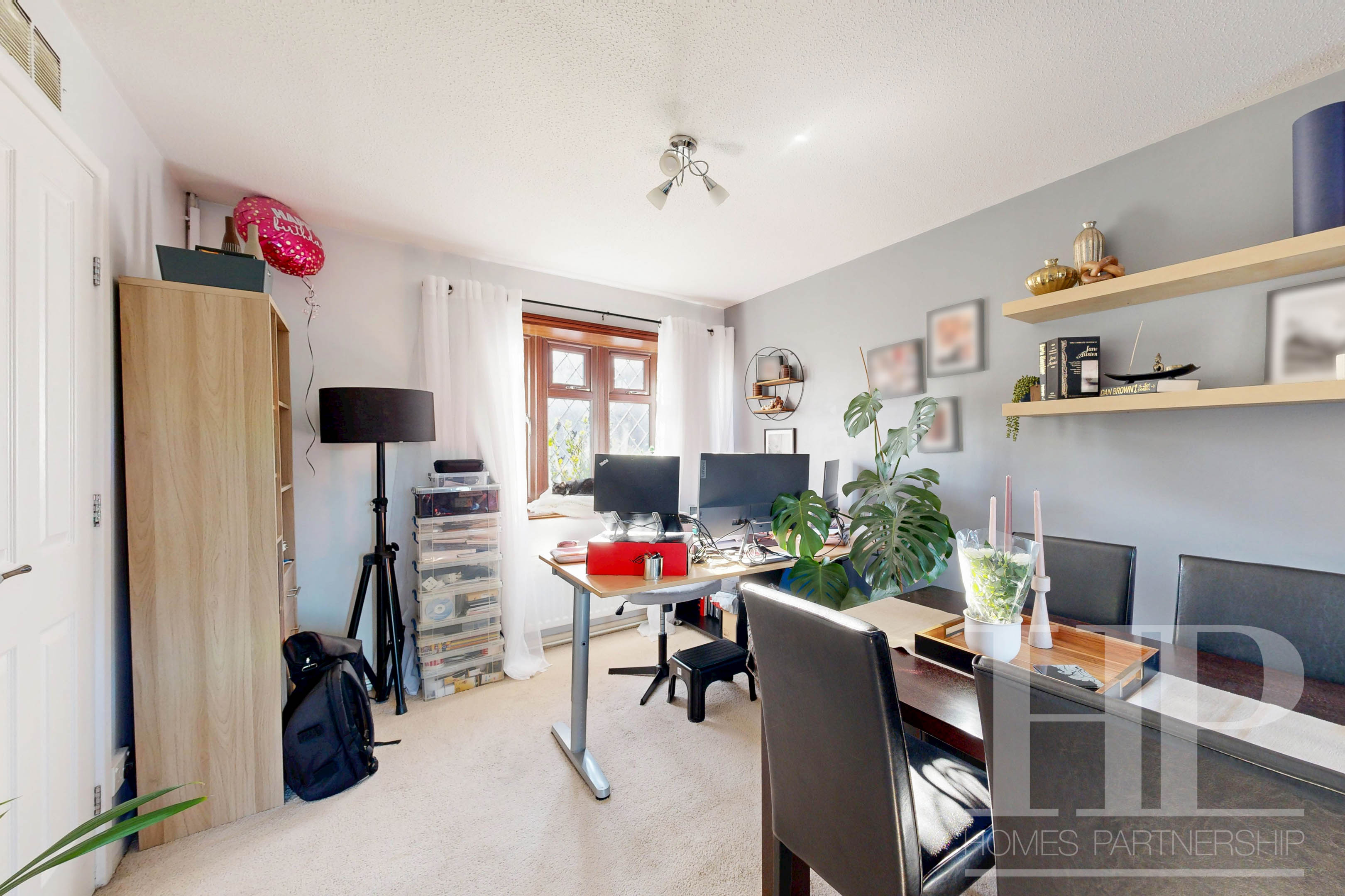 Homes Partnership is delighted to bring to the market this two-bedroom, end-of-terrace house located in the residential neighbourhood of Ifield, on the outskirts of Crawley. The property in full comprises an entrance hall, a light and airy, dual aspect lounge/dining room with a window to the front and French doors opening to the rear garden and a refitted kitchen with a built-in oven and hob and a door opening to the rear garden. Ascending to the first floor, bedroom one overlooks the rear garden. There is a second bedroom to the front with a fitted wardrobe with sliding doors and bi-folding doors opening to the office/study. The office/ study can also be accessed from the landing. Outside, there are two allocated parking spaces, cars parking in tandem. Being an end of terrace, there is an enclosed, corner plot rear garden, with two patio areas, the remainder being laid to lawn with a garden shed. There is gated rear access. This property is well presented and is in a great position. Located less than one mile from Ifield train station, this has great travel links with Metro bus routes easily accessible. We would urge a viewing as this is sure to get plenty of attention and snapped up!
