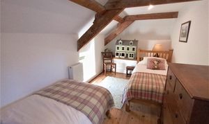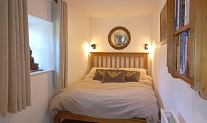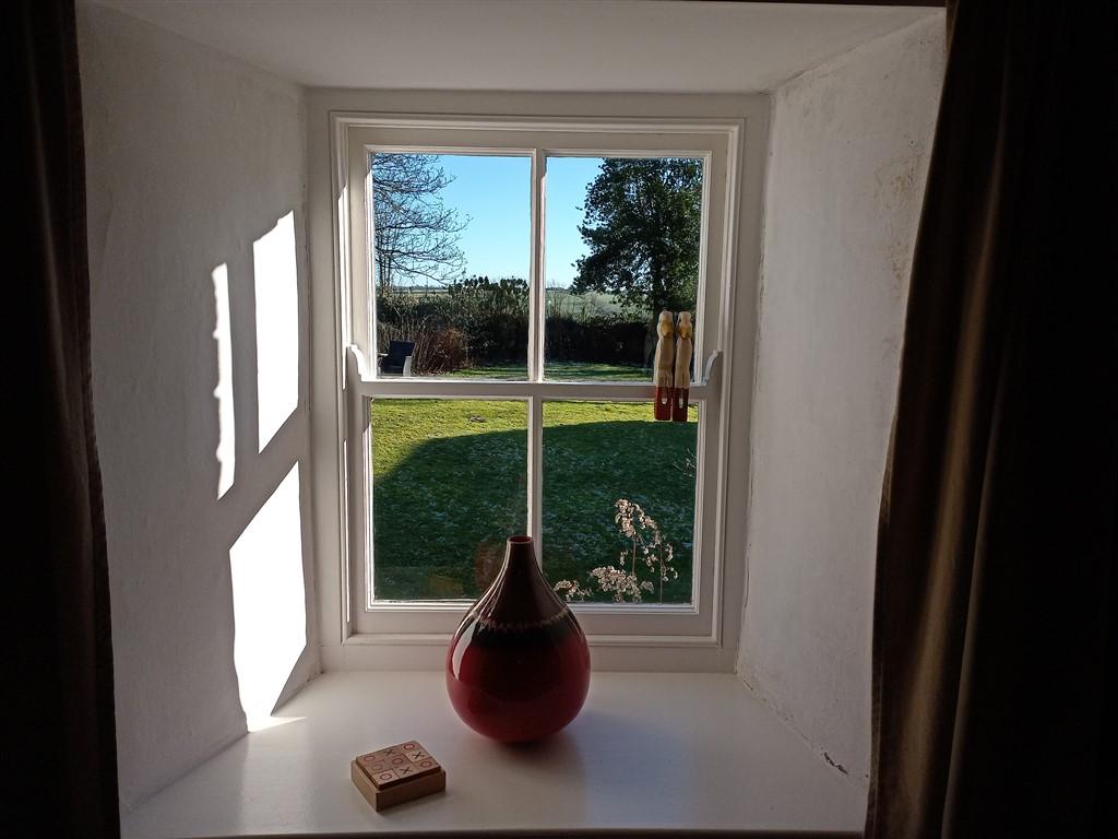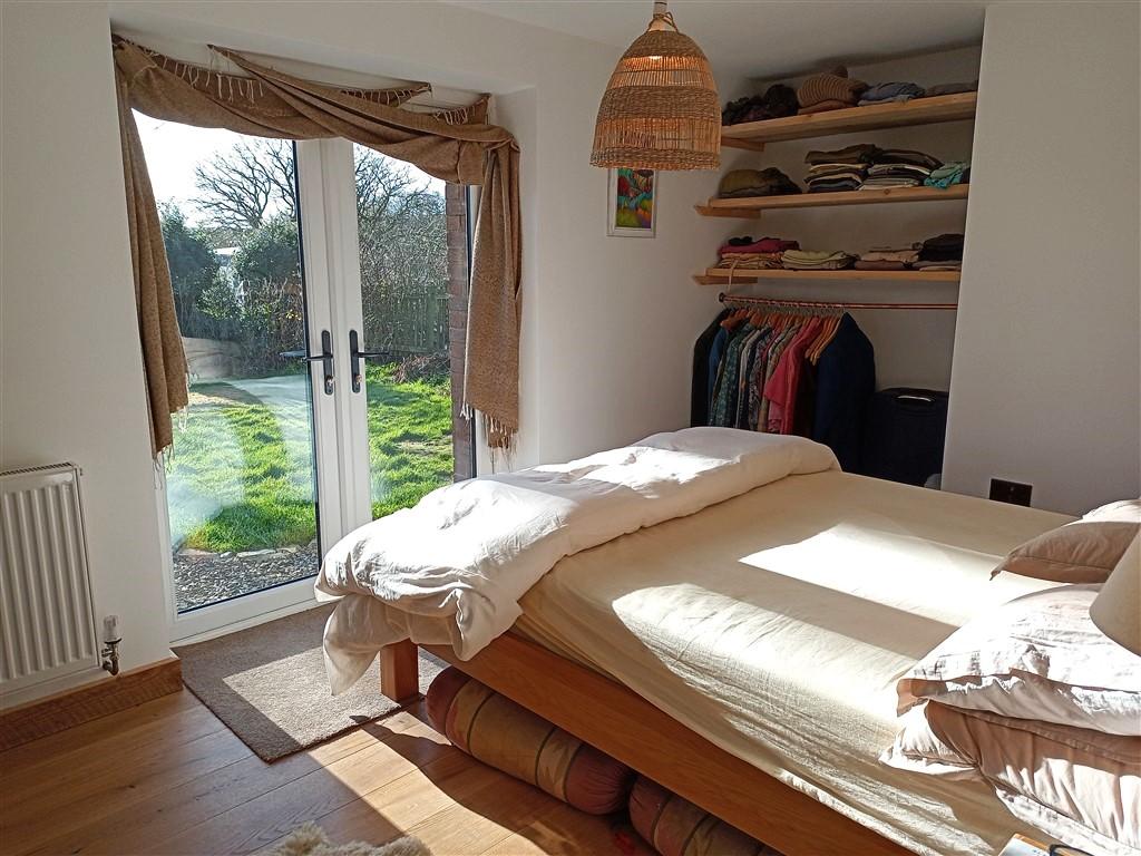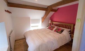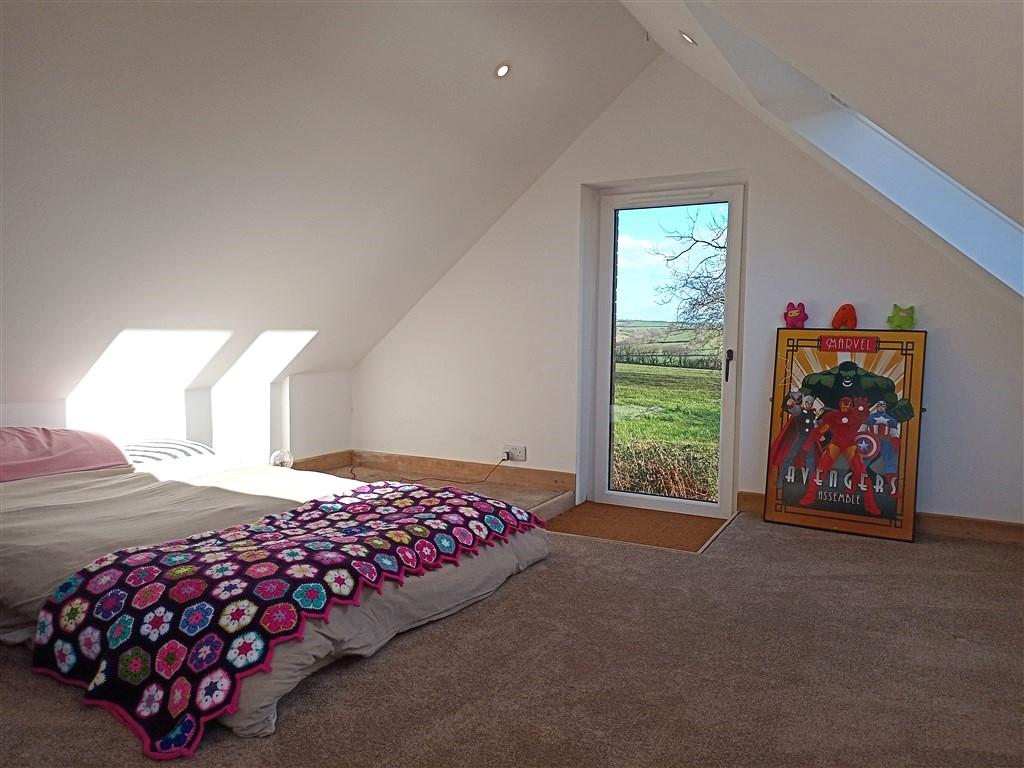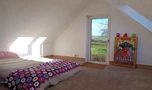 Spacious double with two Velux windows and side glazed window offering countryside views; radiator.