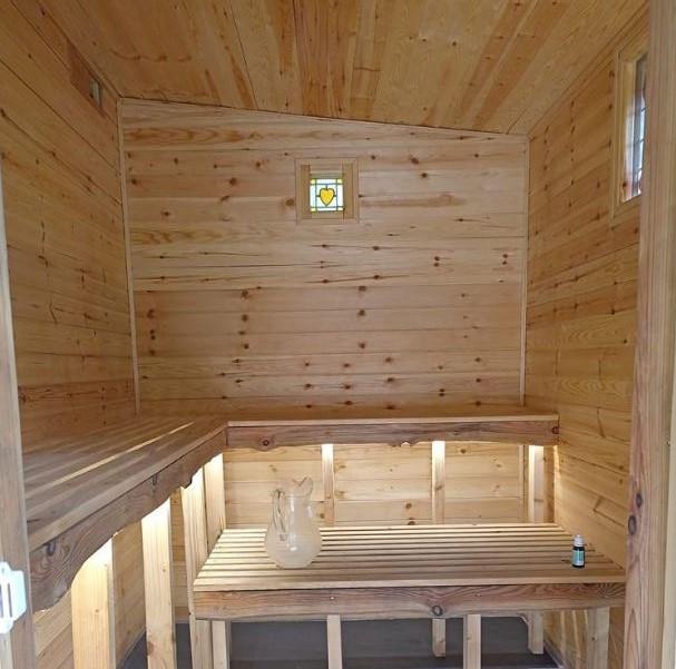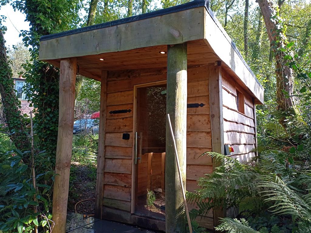 The gardens have been lovingly maintained, blending natural beauty with thoughtful design. Lawns and mature trees wrap around both properties, while a tranquil wildlife pond and gentle stream attract birds and local wildlife. A recently installed sauna and cold dip by the water provide a touch of luxury, creating a private wellness retreat at home.