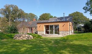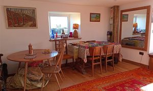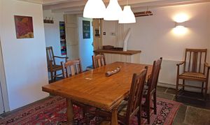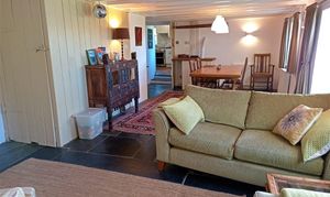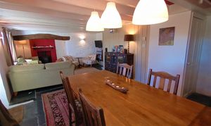 The main house is full of character, with features that reflect its rural heritage yet a layout perfectly suited to modern living. The spacious lounge and dining area centres around a magnificent inglenook fireplace with a wood-burning stove, creating a wonderfully inviting space for family gatherings. The adjoining kitchen and breakfast room is well-equipped, with a stable-style door that opens out to the gardens, inviting the outside in. Completing the ground floor is a double bedroom, currently used as a study, and a convenient shower room. Upstairs, two further bedrooms and a family bathroom provide comfortable accommodation with lovely views over the surrounding landscape.