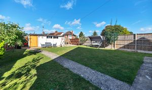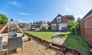 Outside, to the rear, the garden is a very good size, fully enclosed by fencing and offering a lovely private space to wind down after a busy day. It is laid mainly to lawn, with paved and gravel areas providing space for garden furniture, enjoying meals al fresco and entertaining visitors. There are shrubs, fruit trees, access to a large shed, and plenty of scope for new owners to make their own.