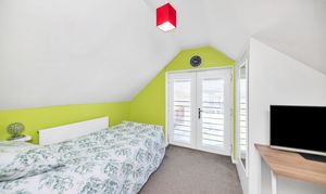 Through to the downstairs sleeping quarters, this lovely property offers 2 of the 5 well-proportioned bedrooms and a downstairs bathroom, comprising a bath with an overhead shower, a WC and a hand wash basin. Upstairs to the first floor, there are 3 further generous bedrooms, excellent storage, and a shared shower room.