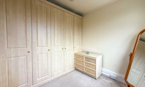 Upstairs, the property offers three well-proportioned bedrooms. The main bedroom benefits from fitted wardrobes, while the second bedroom is a generous double with built-in storage. The third bedroom is a good-sized single, also featuring a fitted wardrobe, making it ideal as a child’s room, nursery, or home office.