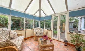 The gardens wrap around three sides of the home, providing a wonderful sense of space and privacy. The front garden is mainly laid to lawn with established shrubs and colourful borders, while the block-paved driveway offers extensive parking.