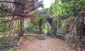 To the rear, the generous and well-established garden is a real highlight, featuring mature trees, shrubs, and planting, along with pathways, two ponds, and three sheds — offering a peaceful and private outdoor retreat.