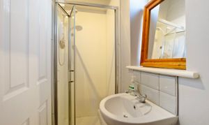 A separate second reception room—currently arranged as a dining room—adds another dimension to the ground floor. This versatile space is enhanced by additional kitchen facilities and leads directly to a double bedroom with en-suite shower room. This suite offers excellent potential as a self-contained annexe, ideal for visiting guests, older relatives, or even as a private home office with its own amenities.
