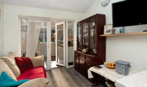 To the left, the inviting front lounge enjoys a large window and a feature fireplace that serves as a charming focal point, making it an ideal retreat for cosy evenings.