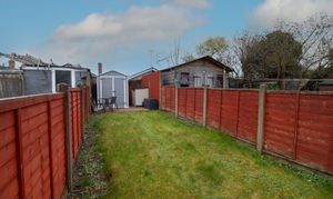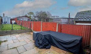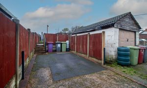 From the path at the rear of the house, you cross a service road to the driveway, which has parking for one vehicle. Steps then lead up to a patio seating area, perfect to enjoy the summer rays then the lawned area is at the rear of the garden which makes it ideal for play in the enclosed rear garden.