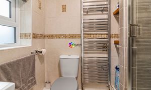 The shower room is on the ground floor with a modernised double width shower enclosure , white WC and a white wash hand basin. There is a window to the side and a chrome ladder style radiator.