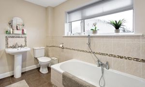 Stepping through the stylish composite front door in to the good sized entrance porch you then enter the hallway where stairs rise to the first floor and there is an opening to the dining room (which could be used as a bedroom) and doors to the living room, downstairs WC/utility room and kitchen/breakfast room. The spacious dining room has a window overlooking the front of the property. The downstairs WC/utility comprises a low level WC, vanity wash hand basin and plumbing and space for a washing machine and tumble dryer. The living room enjoys a large window to the front affording superb countryside views and has a feature fireplace with a log burner. The kitchen/breakfast room is fitted with a range of wall and base mounted units, a range cooker, dishwasher and space for a large fridge freezer. There is a pantry cupboard, window overlooking the rear garden and a door to the side. The breakfast area enjoys a lovely outlook with patio doors leading out to the garden. An arch from the breakfast room opens through to the living room.