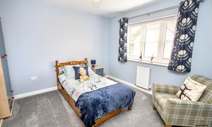 Another generous double bedroom positioned to the rear of the property, enjoying a pleasant outlook and plenty of natural light from the uPVC window. This room is beautifully enhanced by bespoke fitted wardrobes, and matching drawer units, creating a cohesive and thoughtfully designed space with excellent built-in storage. A radiator provides comfort throughout the seasons, making this an ideal guest room, teenager’s retreat or stylish additional principal bedroom.