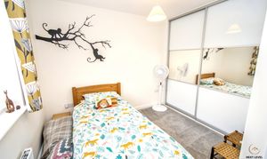 A generous single bedroom. Positioned to the front with a uPVC window allowing in natural light, the room also benefits from fitted wardrobes with sliding doors, providing excellent built-in storage while maximising usable space. Ideal as a bedroom, nursery, dressing room or home office depending on your needs.