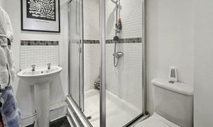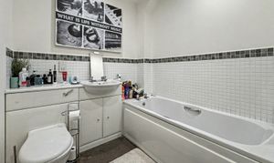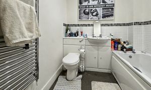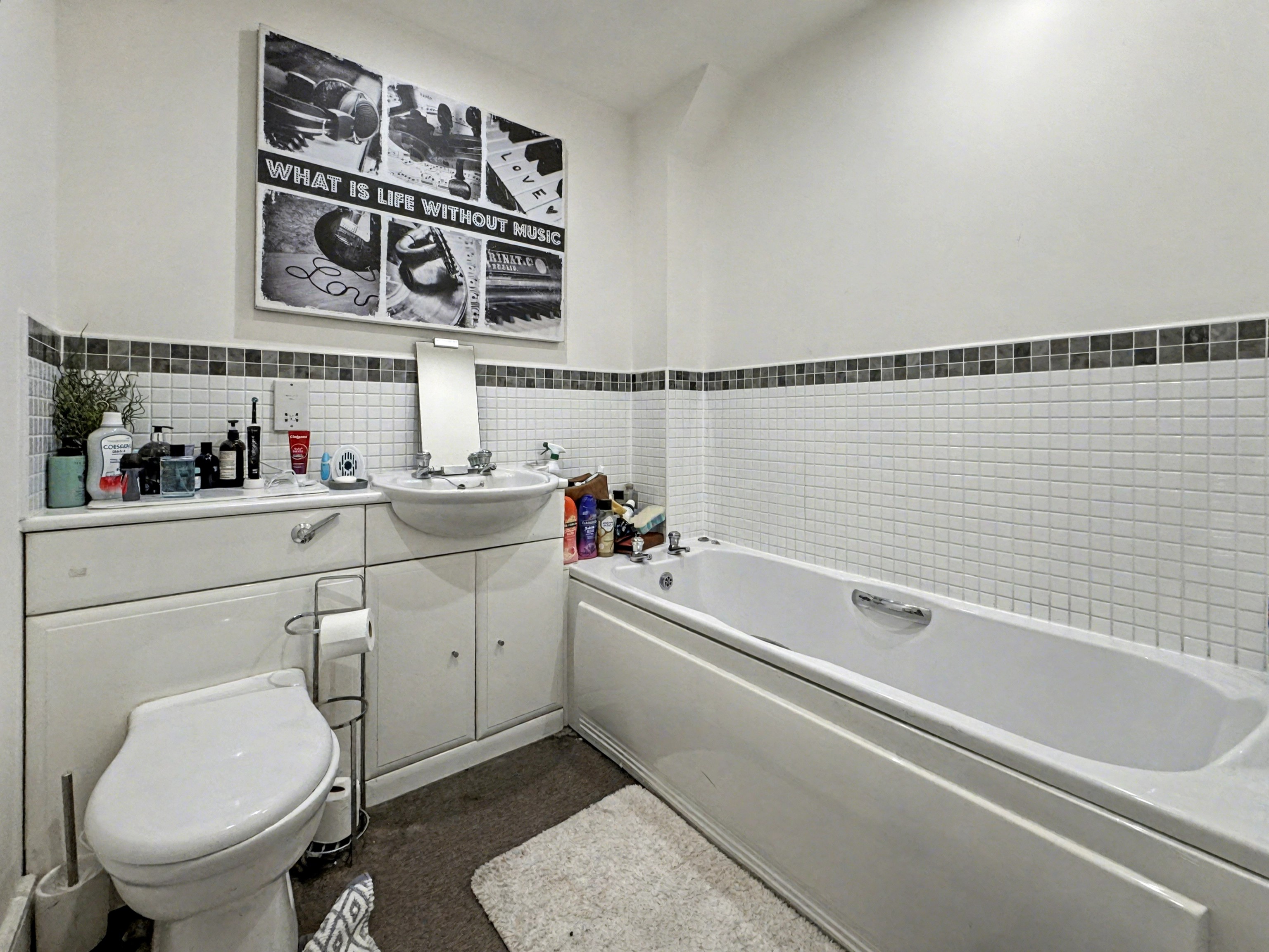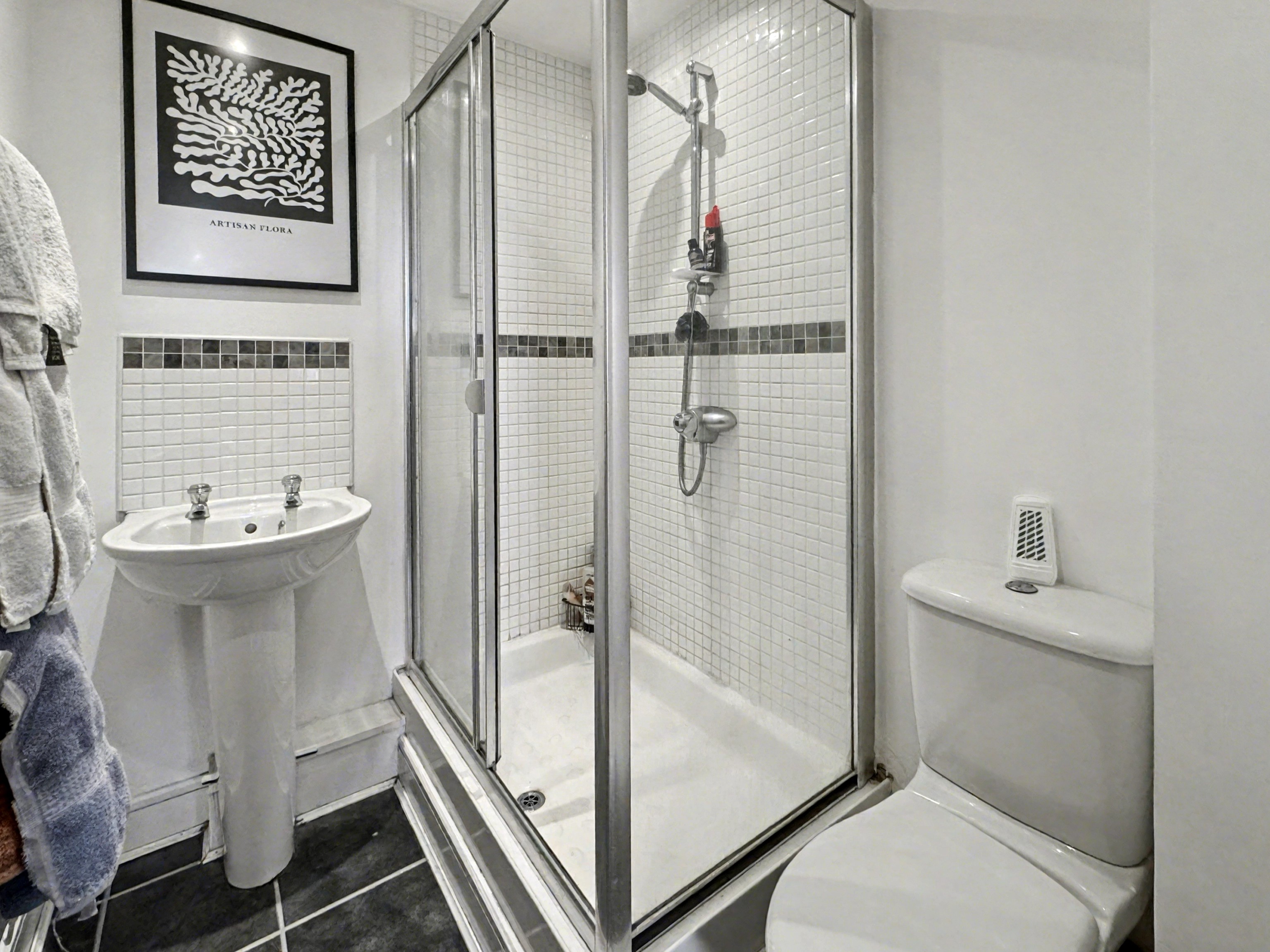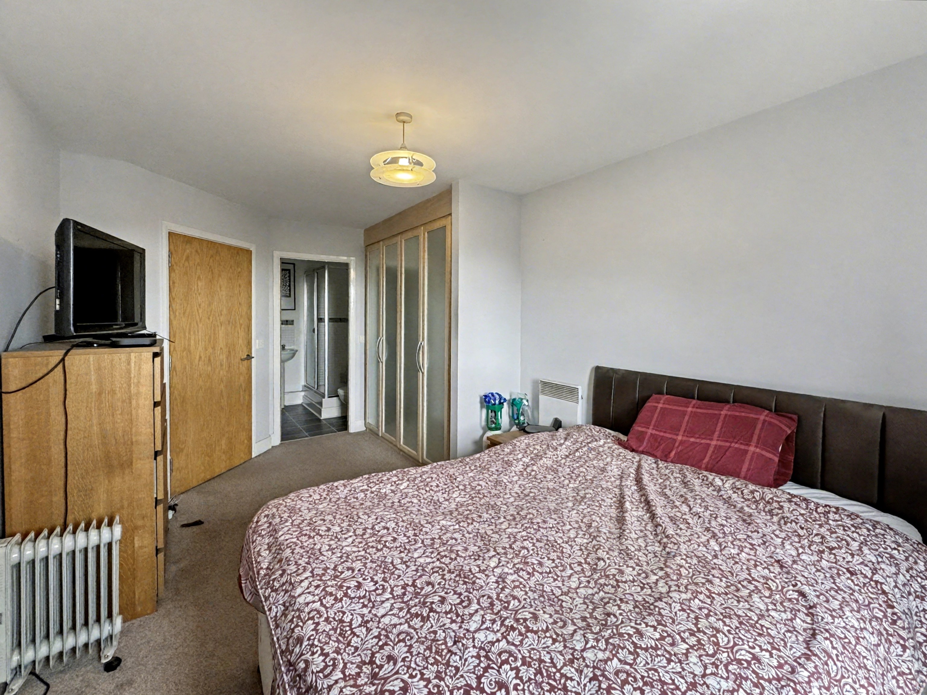 Both bedrooms are generous doubles, with the main bedroom benefitting from fitted furniture that maximises storage while maintaining a sleek and stylish finish. The en suite shower room adds a touch of luxury and privacy, complemented by a well-appointed main bathroom for added convenience.