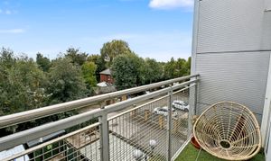 The living space opens out onto a south-facing balcony, where residents can enjoy captivating views towards the city centre. Whether it’s a peaceful morning coffee or a sunset backdrop after a long day, this outdoor space provides a private retreat with a delightful outlook.