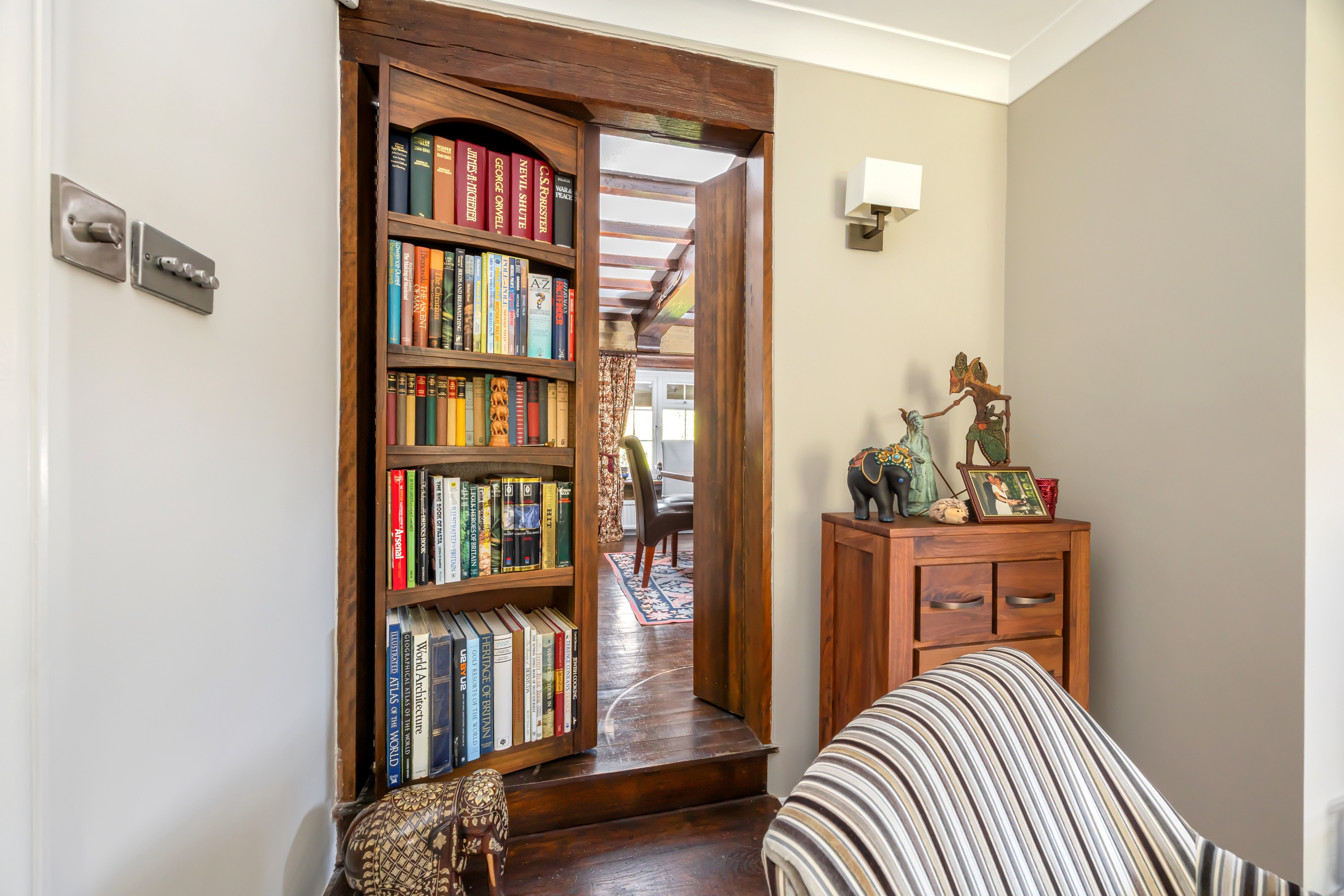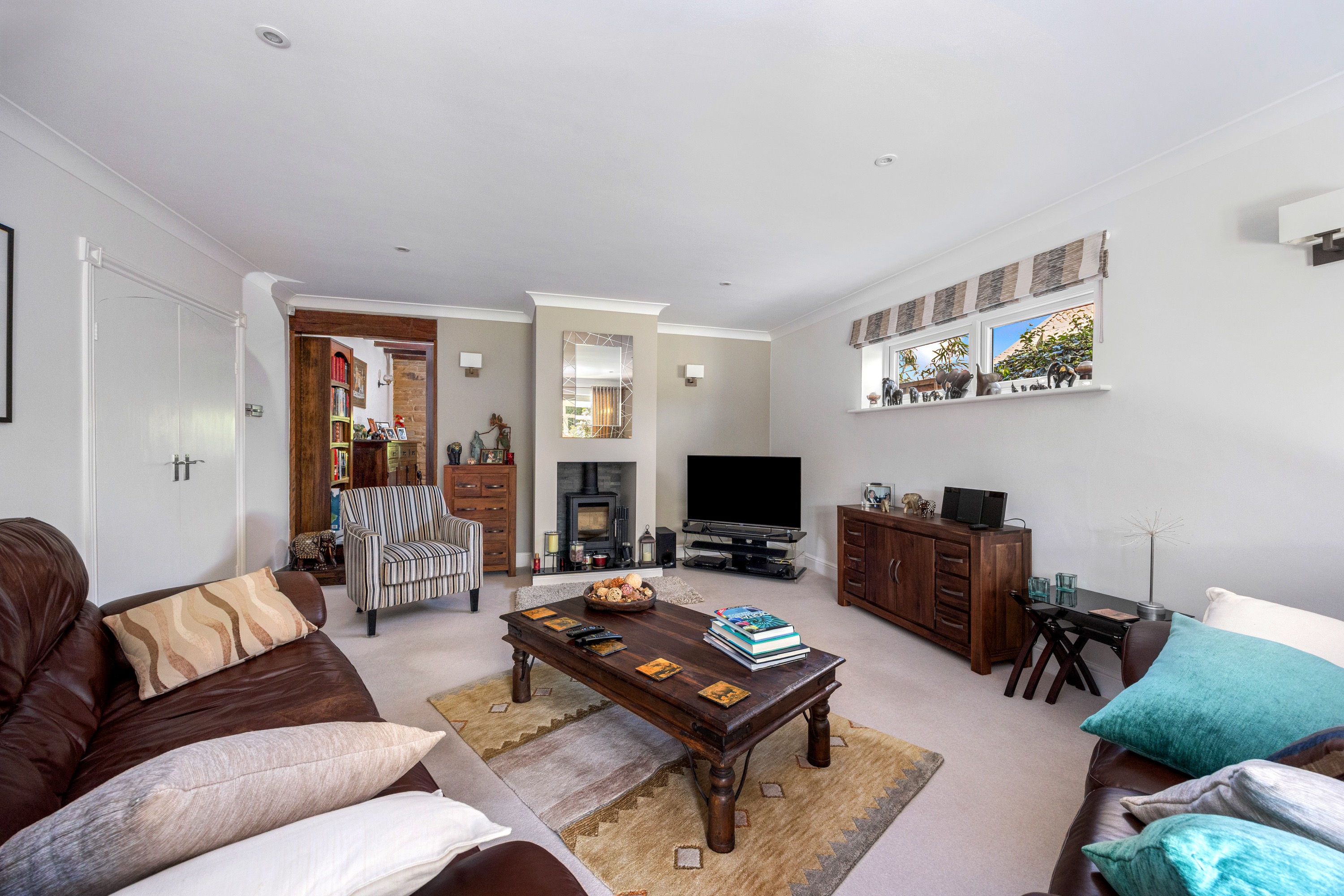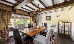 To the ground floor; the reception hallway welcomes you and has double doors leading into a fabulous sitting room which centres around the fireplace which incorporates a log burner - ideal for crisp winter evenings, glass sliding doors lead from the living room to a conservatory/garden room where you can enjoy fine views over the rear gardens and there is a direct access onto the rear garden terrace. The kitchen has a modern finish and has a range of wall and base cabinets with contrasting work surfaces running through, there is a selection of integrated appliances as well as a sit up breakfast bar and an open plan flow to the sunny breakfast/dining room area. Further living space to the ground floor continues with a generous dining room which is accessed via a secret bookcase door and enjoys an aspect to the front of the property, it has a wealth of character with exposed wooden beams and strip wood flooring. There is a separate study which has an aspect to the front of the property as well as a convenient utility room and a downstairs cloakroom.