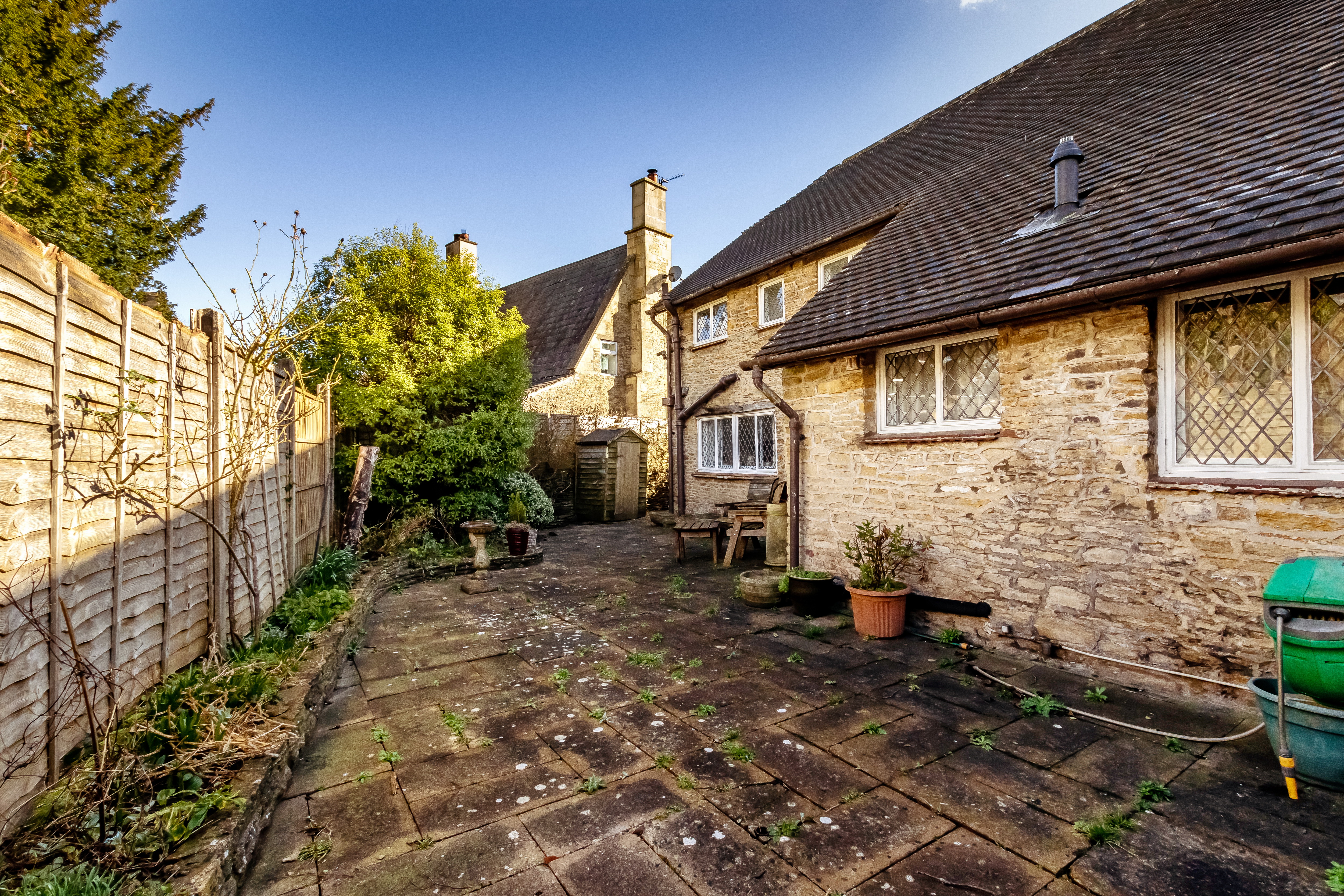 Private patio area to the rear of the property with fences and walls making this a lovely area for BBQ's when the weather allows, oil tank, shed, shrubs, flower borders, gated access to front and rest of garden.