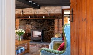 A warm and welcoming room that lends itself to conviviality and conversation, take a seat at the breakfast table, set before the handsome redbrick chimney breast with electric stove and catch up with family and friends over coffee and cake. Appliances include a dishwasher and Rangemaster cooker. Storage is plentiful, with ample space to slice and dice on the wooden worktops.