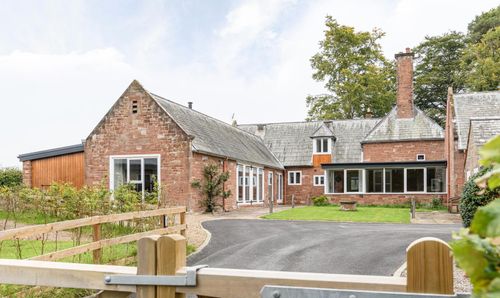 Positioned within private grounds and framed by panoramic views over open countryside, this striking barn conversion offers over 4,400 sq ft of refined contemporary living. Thoughtfully conceived to blend lifestyle and functionality, the house includes five bedrooms, four bathrooms, and a remarkable open-plan living space, alongside a self-contained two-bedroom annexe and equestrian facilities. A rare find west of Carlisle, the property balances rural seclusion with high-spec design.