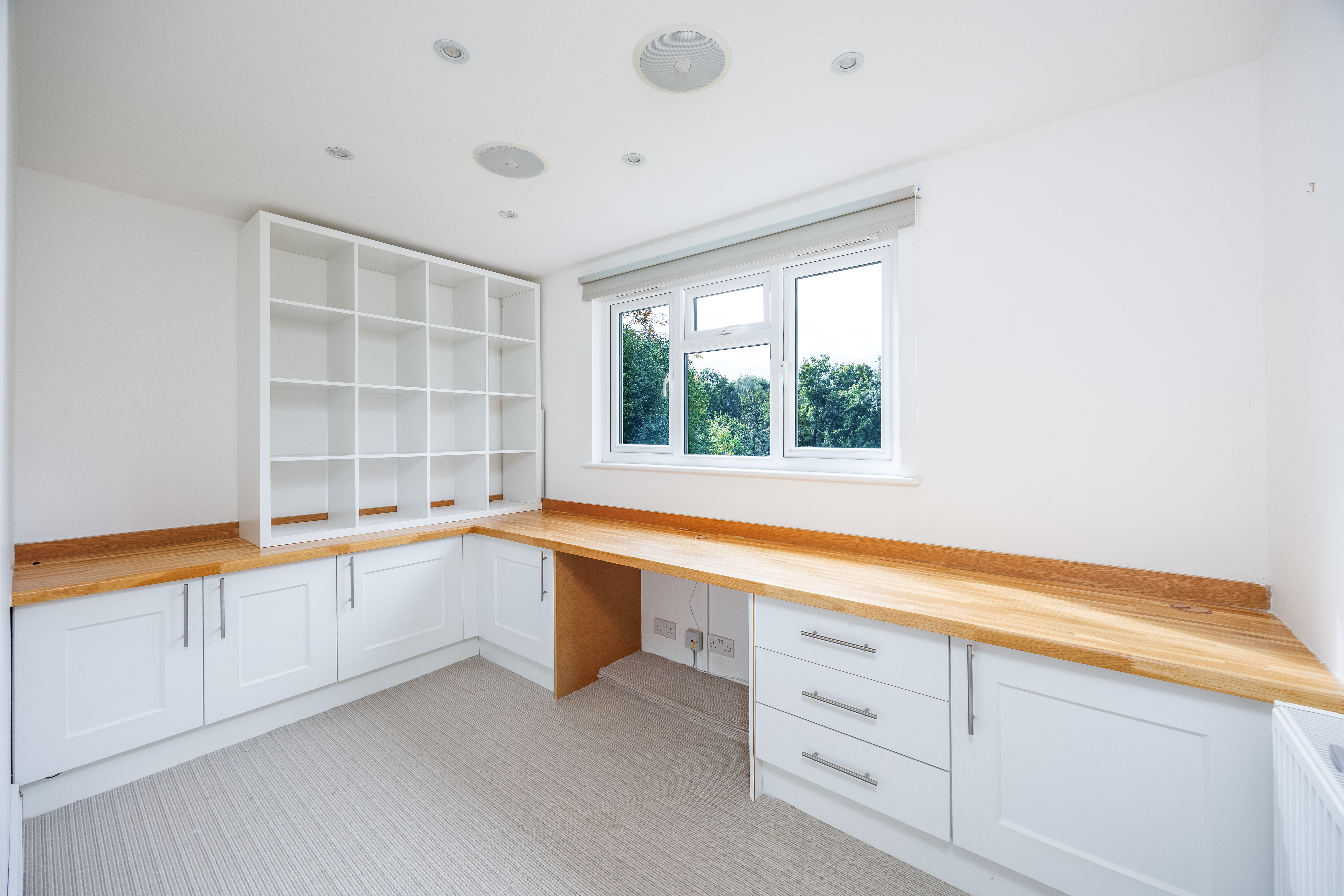 To the front is the CIRCULAR DRIVE with parking for many cars and to the rear is the lovely SOUTH FACING GARDEN with a delightful open aspect, paved stone terrace with firepit, lawns & workshop.