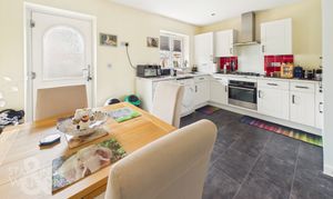 Once inside, a central hallway is the first place to greet you granting access to all living accommodation within the property as well as two well proportioned built in storage cupboards within the central hallway. Immediately to your right, a well proportioned two piece WC comes with a low level radiator and frosted glass window to the front of the home. Directly ahead as you enter, the kitchen and dining room opens up with a floor space suited to a formal dining table on the left hand side of the room in front of an access door leading into the rear garden. To the right hand side, a mixture of wall and base mounted storage units currently house integrated appliances to include an oven and hob with extraction above and tall fridge/freezer with space and plumbing remaining for a washing machine. Slightly further down the hallway and next to this space is the open sitting room - the space is laid with carpeted flooring leaving more than enough potential for a choice of layout of soft furnishings with uPVC double glazed French doors opening into the rear garden and a raised timber deck seating area allowing natural light to fill the room.