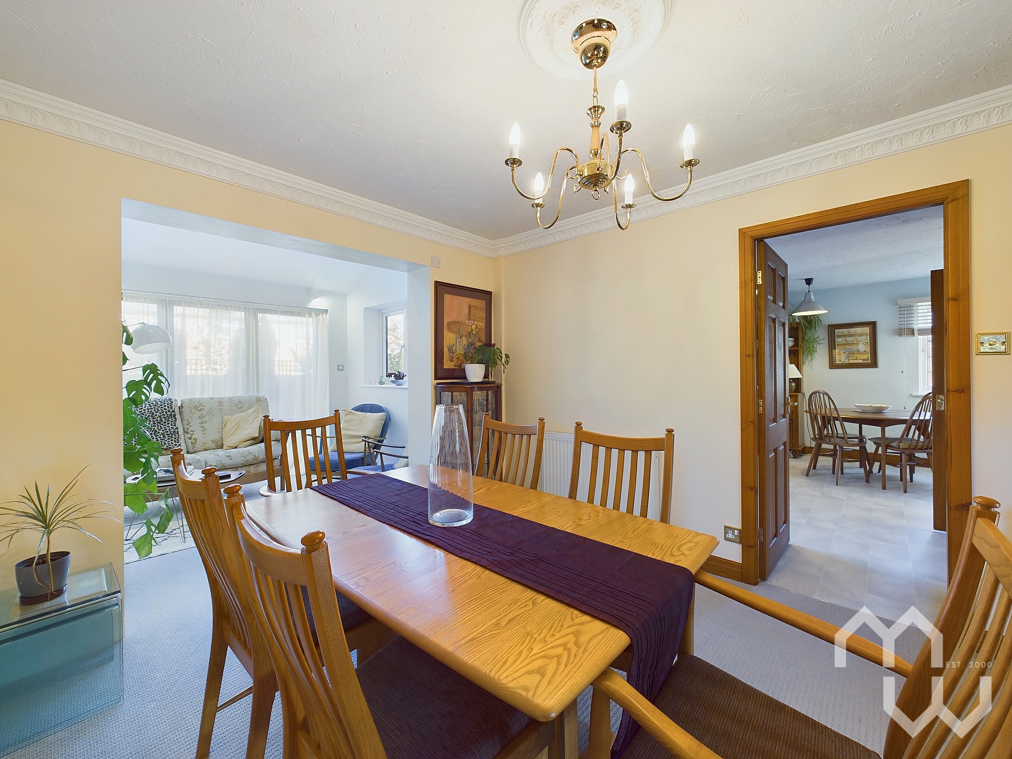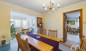 Good sized dining room opening out into garden room. Door to Kitchen.