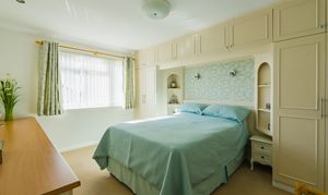 The master bedroom has an array of fitted wardrobes and drawers and is south facing so gets plenty of light. There is a further 2 double bedrooms one with patio doors out to the garden. The shower room has a shower cubicle and is tiled from floor to ceiling. In the hall there is a handy cloakroom and an airing cupboard. The central heating is oil fired and there is uPVC double glazing throughout.