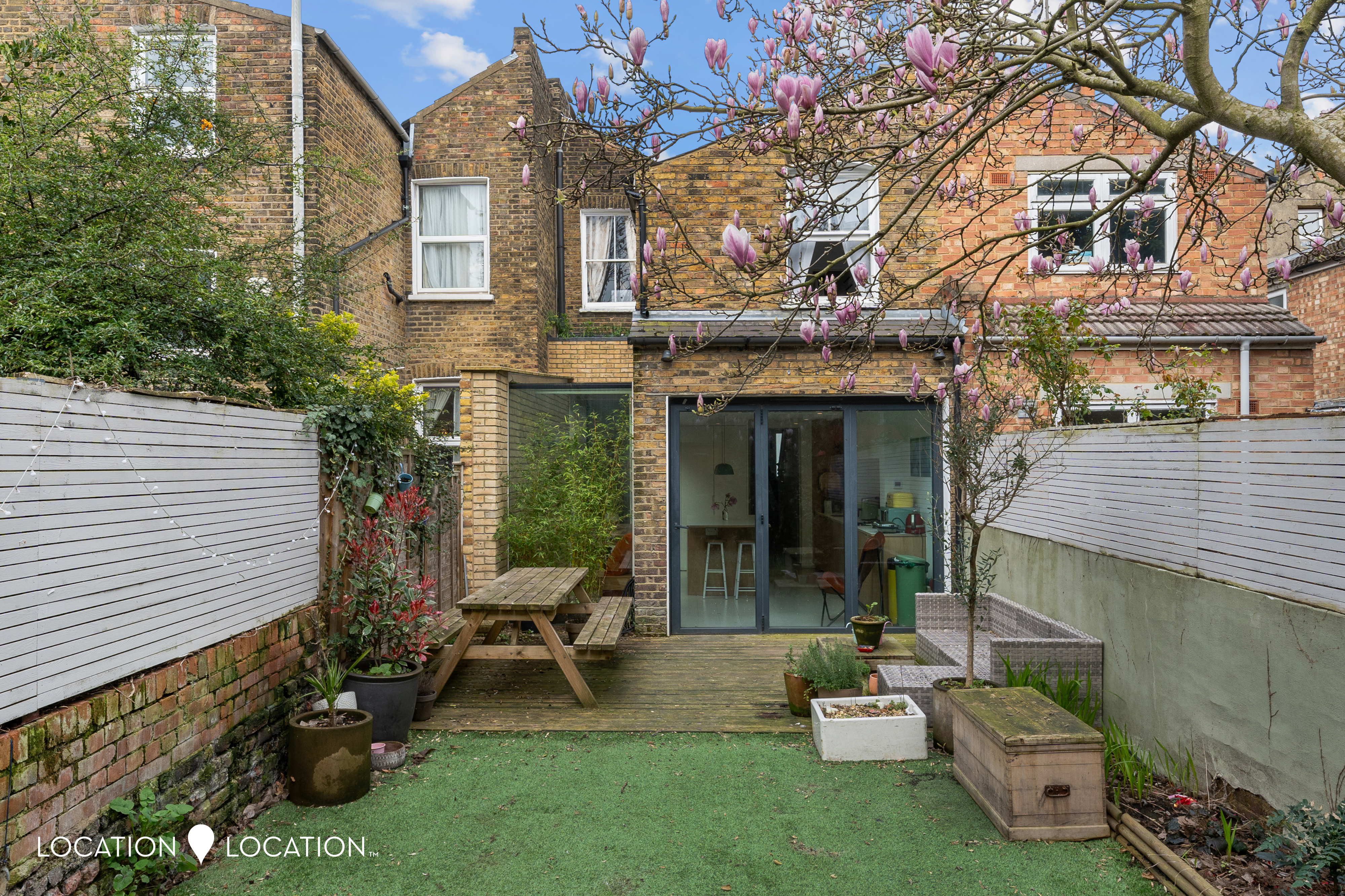 The wonderful home comprises; three double bedrooms, modern tiled bathroom with a bathtub, a stunning double-reception and a large through kitchen and dining area at the rear leading out to a beautiful South facing rear garden that includes a garden office and shed. Further benefits include painted original floor boards, period features with large windows, additional downstairs WC and beautiful modern kitchen with bi-folding doors and skylight.