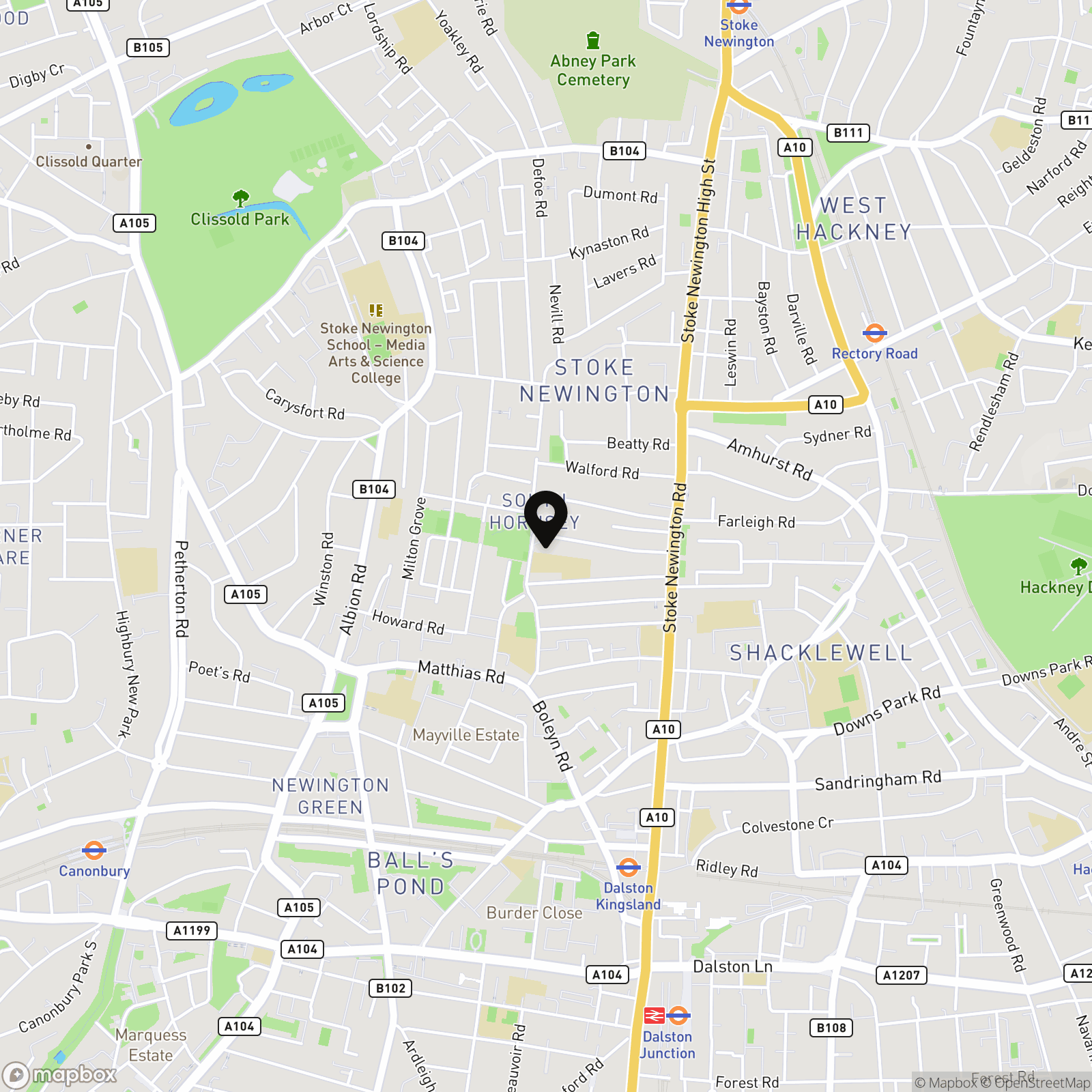 Palatine Road is a quite tree-lined residential street moments away from Butterfield Green Park and within walking distance of the many bars and restaurants of both Stoke Newington Church Street and Dalston. Transport links include, Dalston Kingsland Station (Overground & East London Line) and a variety of bus routes in to The City and West End.