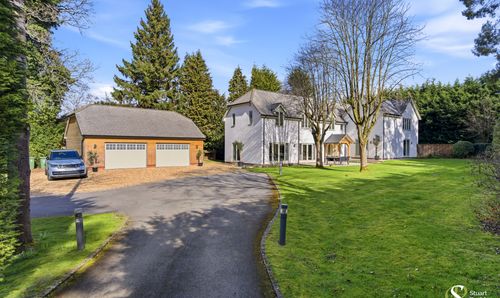 The first floor features a master bedroom complete with dressing area and en suite bathroom, plus French windows overlooking the rear garden. Three more generous bedrooms (one en suite), and a family bathroom finish off this stylish home’s interior, while a detached double garage and spacious driveway complete the exterior.